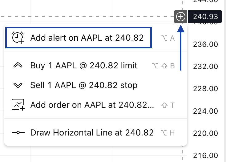 5. 价格刻度当前价格旁的 "+" 号按钮: