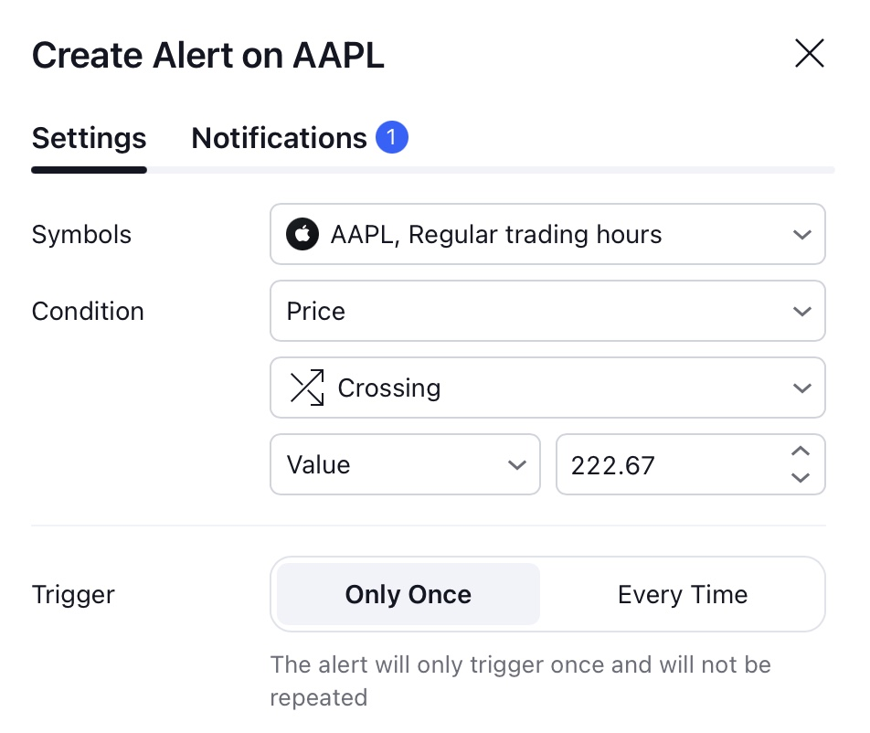 有两个选项可用于常规的基于价格的警报 - 仅一次和每次。