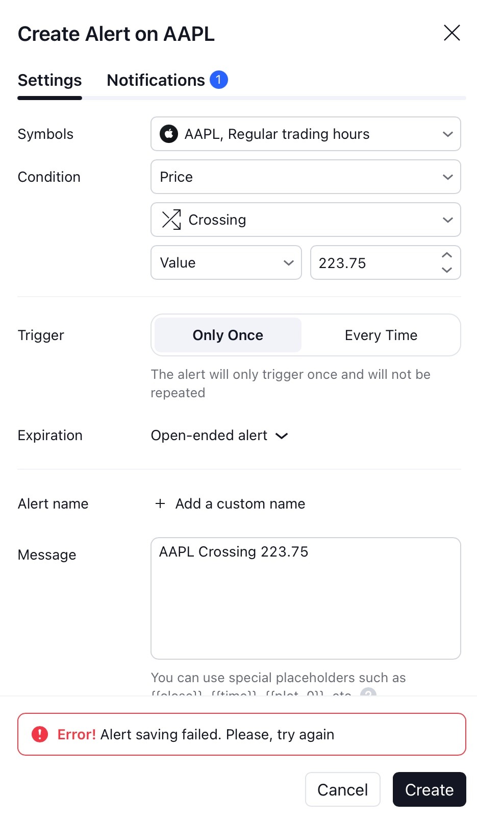 如果创建警报时出现错误,或未加载警报管理器,原因之一可能是您的互联网连接或浏览器/操作系统设置出现问题。