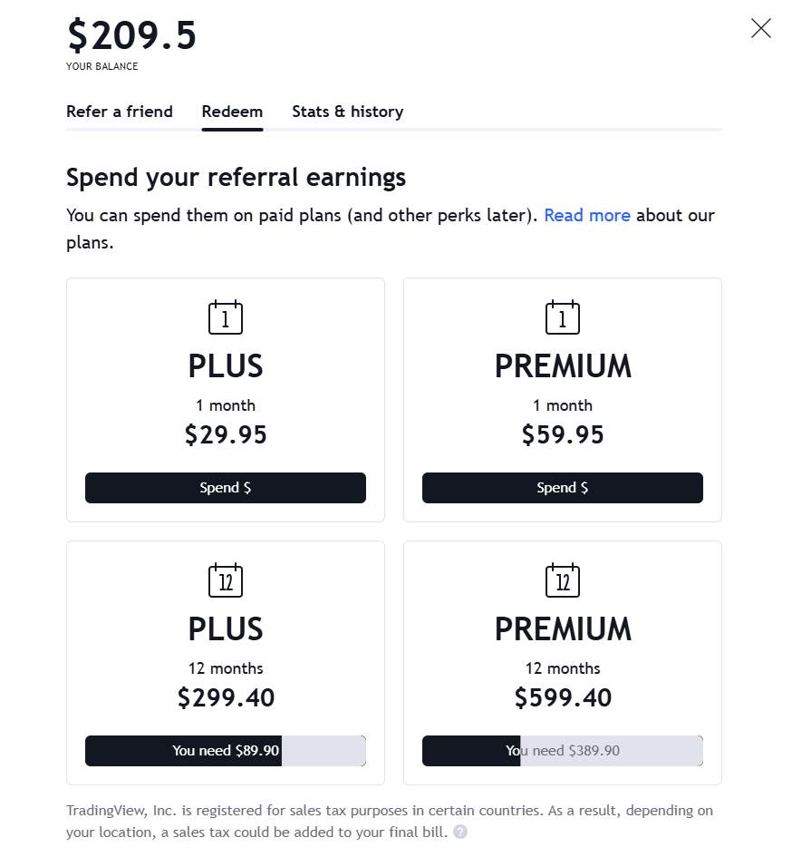 您可以在我们的月度或年度付费方案使用推荐奖励。请注意,您只能在网站上使用奖励。为此,请单击您的个人资料图标,选择“推荐朋友”,然后“兑换”。