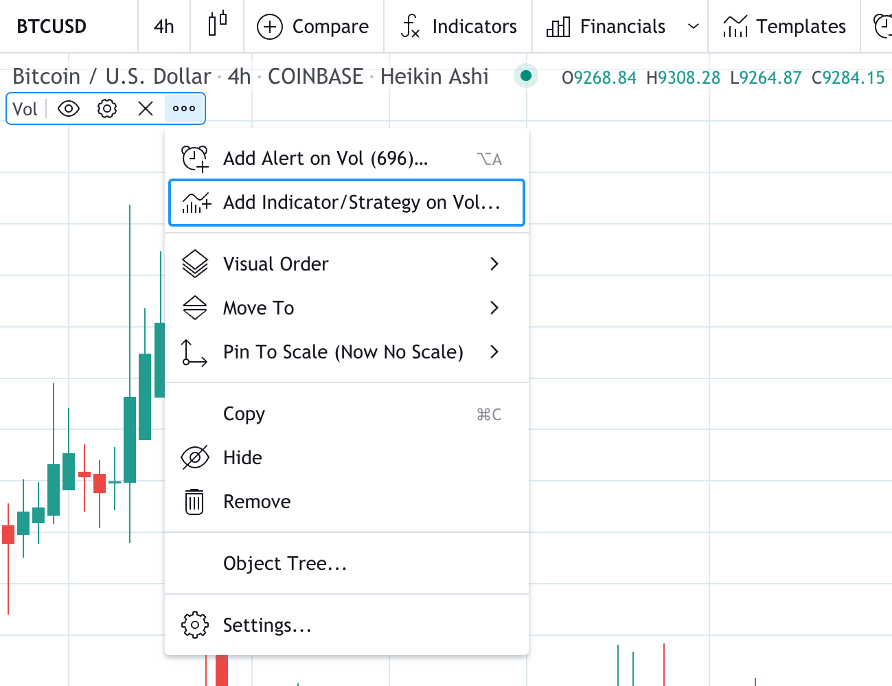 2.右键单击指标图。然后选择 “在...上增加指标/策略” (Add Indicator/Strategy on ...)