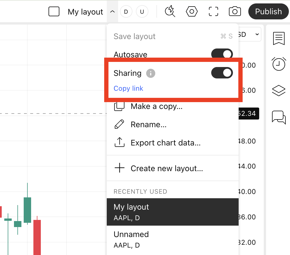 默认情况下,所有已保存的图表都不会被其他用户看到(即使他们有链接)。 但是可以选择可见的图表,并且可以由具有链接的用户复制。