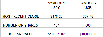 在下面的示例中,使用相同数量的股票会导致以美元计算的交易高度不平衡。