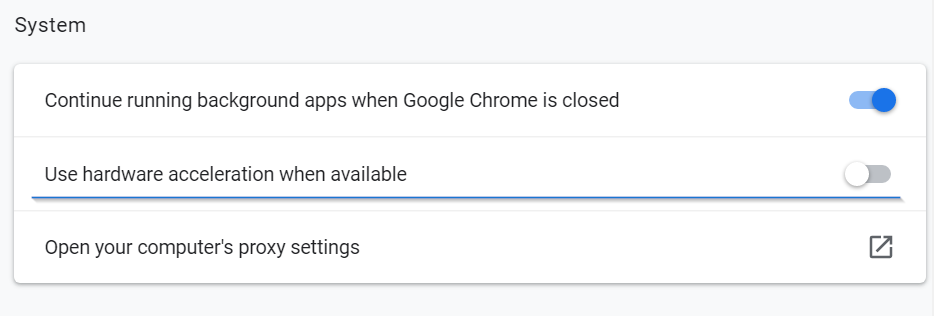您可以尝试以下步骤。首先,检查您的浏览器是否有最新更新,并在必要时进行更新。如果问题仍然存在,请在浏览器的系统设置中禁用硬件加速(hardware acceleration)(对于Chrome:chrome://settings/system)。
