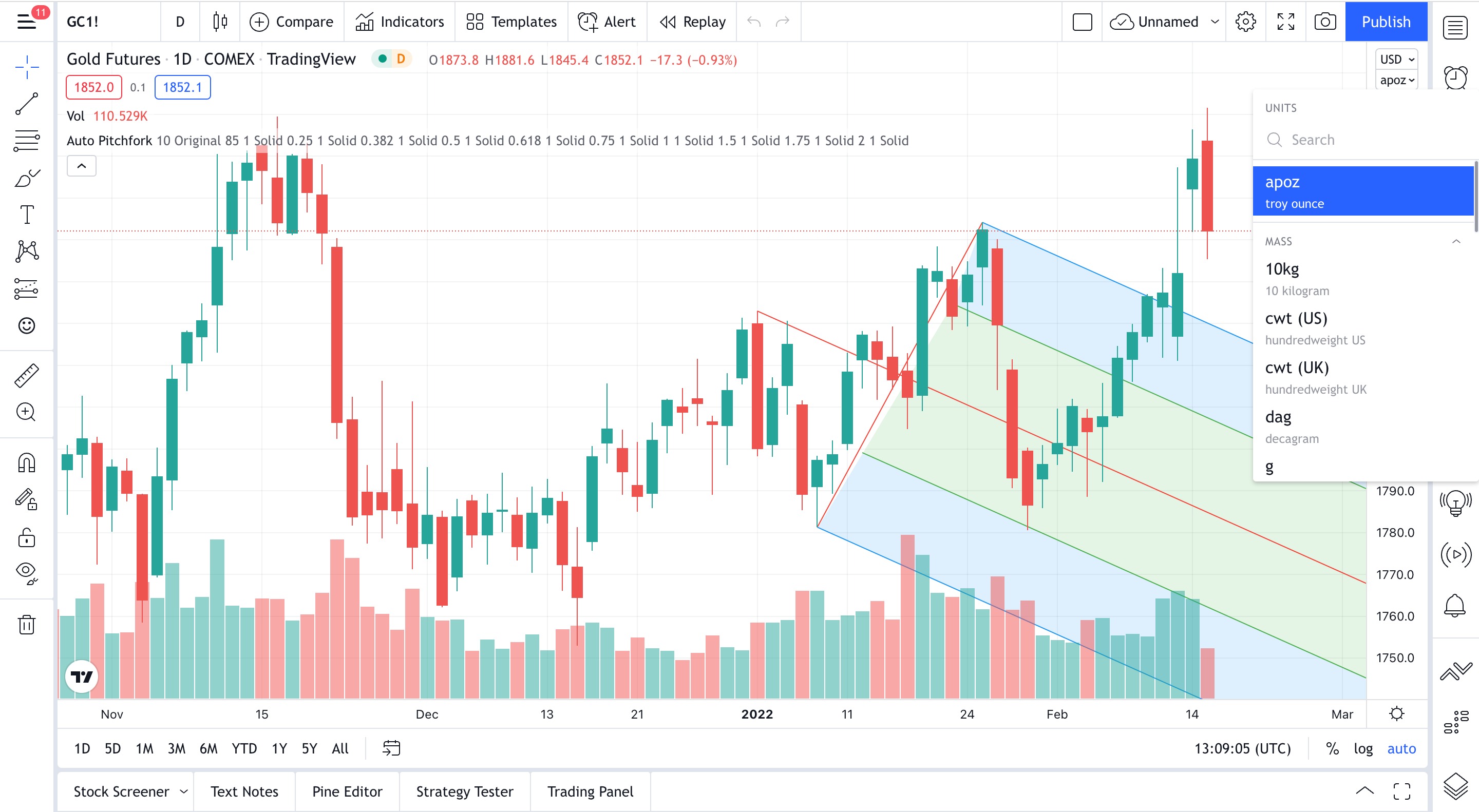 结合货币换算,此功能将帮助您评估您感兴趣的商品资产的汇率差异。或者您可以转换图表以更熟悉的计量单位查看该商品的价格。