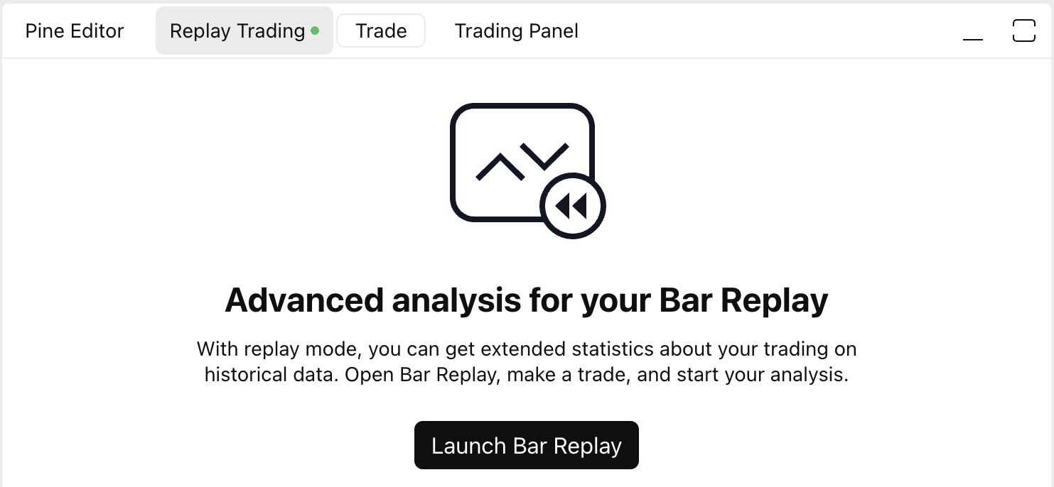 在K线回放模式下,您可以基于历史数据进行交易。这是一种独立于模拟交易的交易模式。交易数据和总体结果仅在交易时段内可用,不会保存在任何地方。