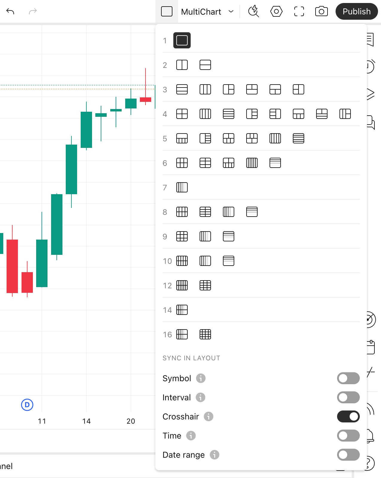 布局中可以有 1 到 16 个图表。布局中的最大图表数量取决于您的订阅级别。