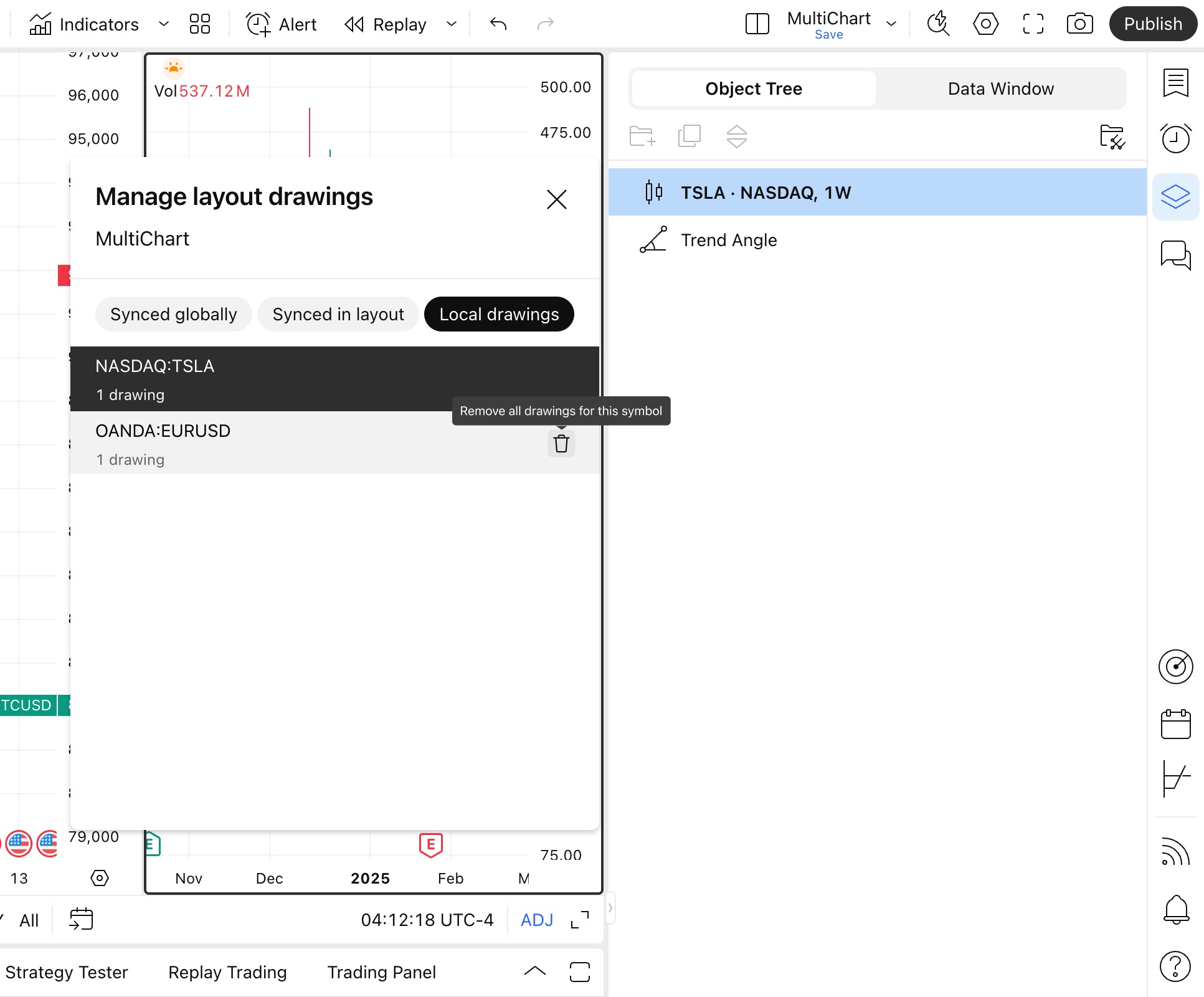 全局同步。绘图对象将在所有图表和布局中同步,这意味着它们甚至会出现在全新布局中。切换绘图对象的全局同步模式会将其从所有其他布局中移除。