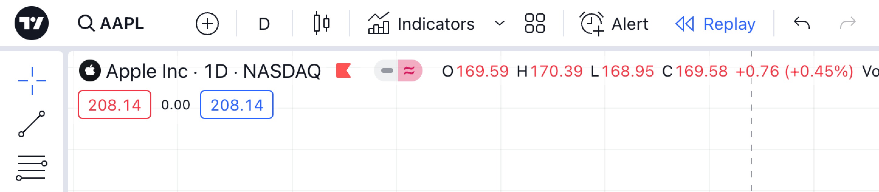 选择起始点:您现在可以在图表上选择回放的起始点。将光标悬停在图表屏幕上时,会出现一条带有剪刀的蓝色垂直线。点击您想要的起始日期和时间。