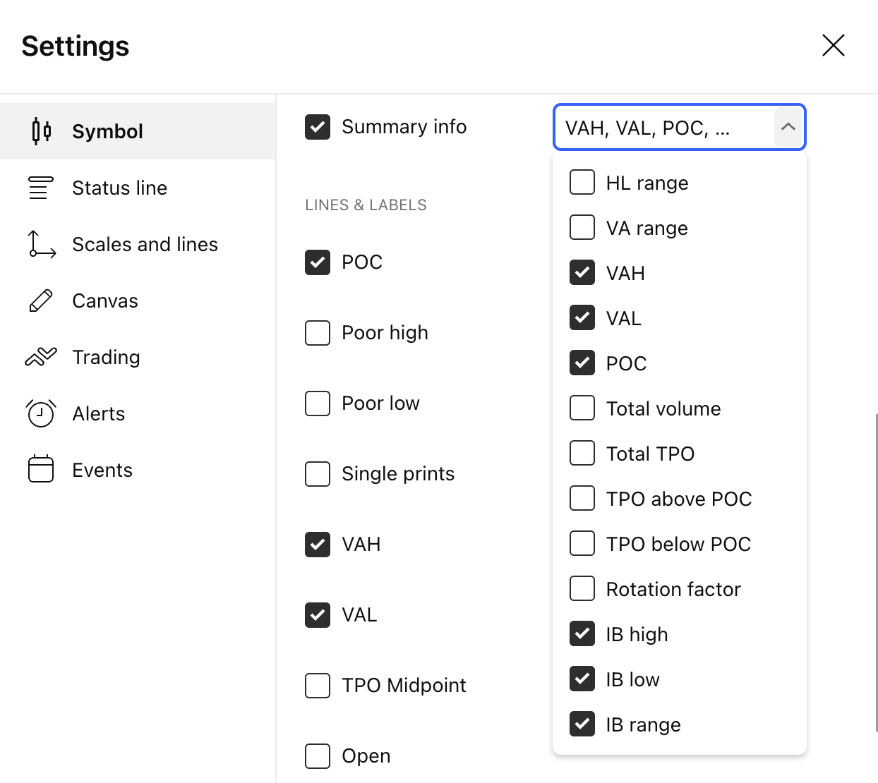 - VAL - 切换 TPO 期间线路的可见性和低值区域标签。