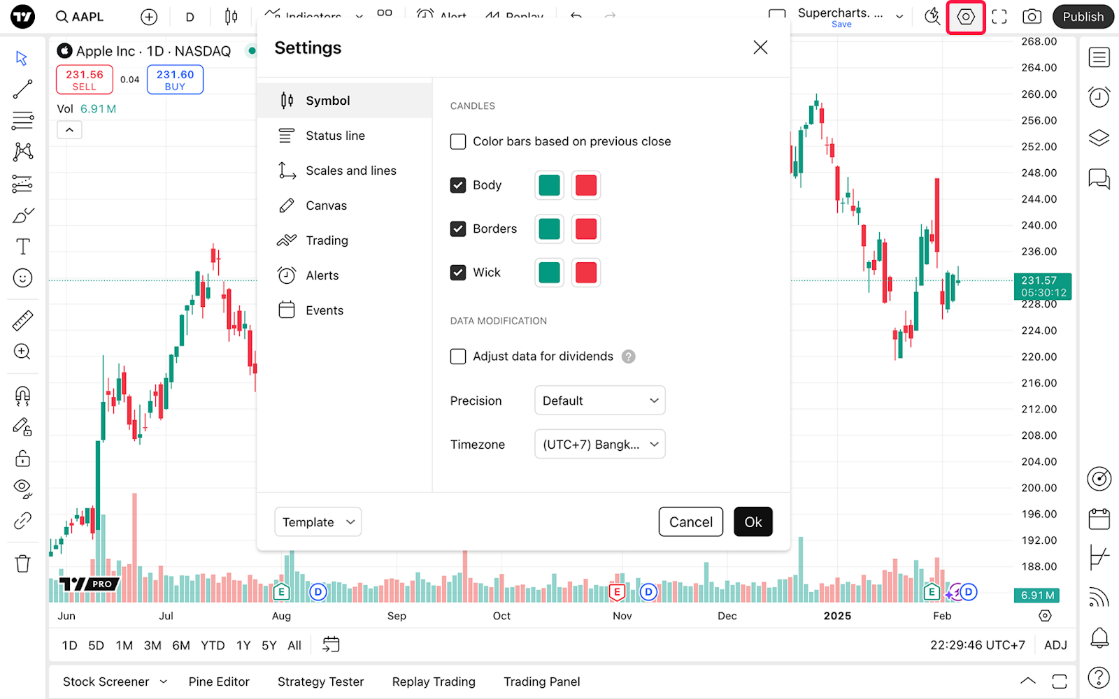 - 边框:更改K线边缘的颜色。