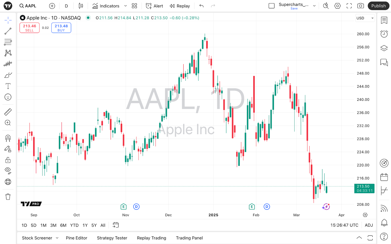 注意:图表类型和商品的设置可能有所不同。商品部分会根据您选择的图表类型而变化,并且比特币无法记录股票分割等公司事件。