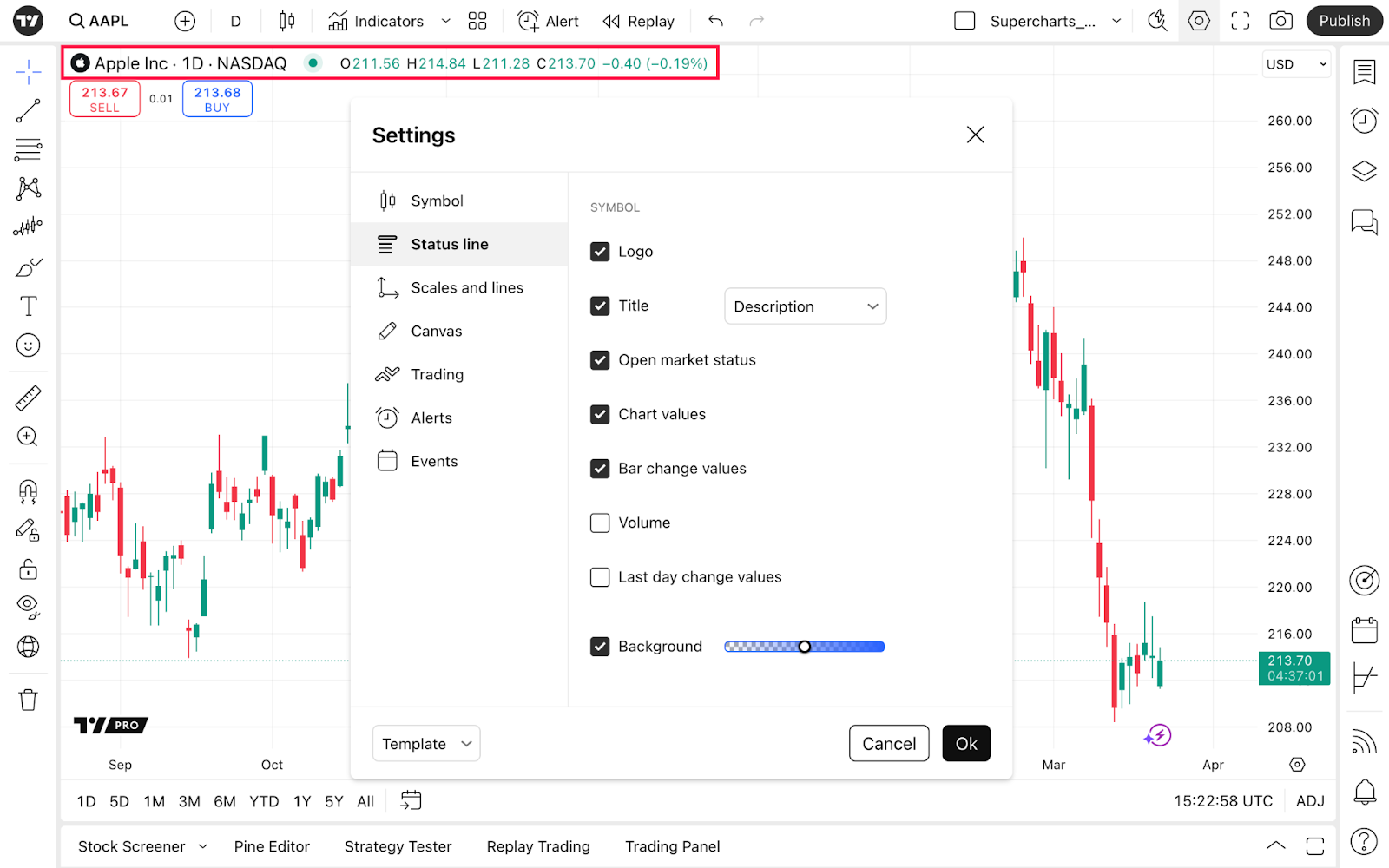 图表设置可帮助您微调图表以匹配交易方式。使用设置,您可以调整外观,类型,视觉元素,价格坐标等,以创建完美的设置。