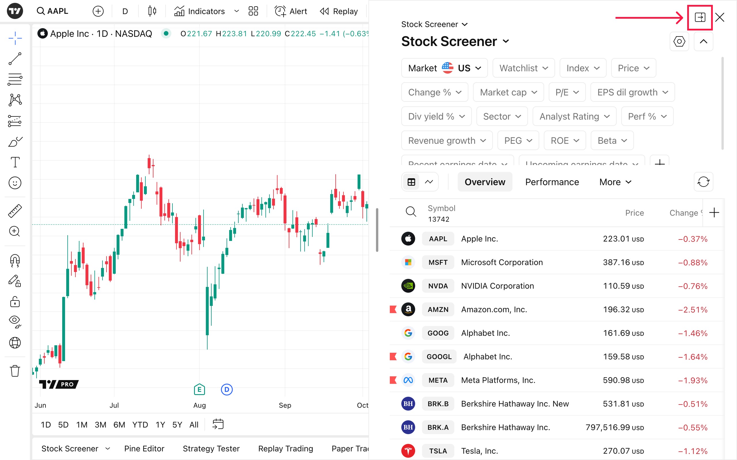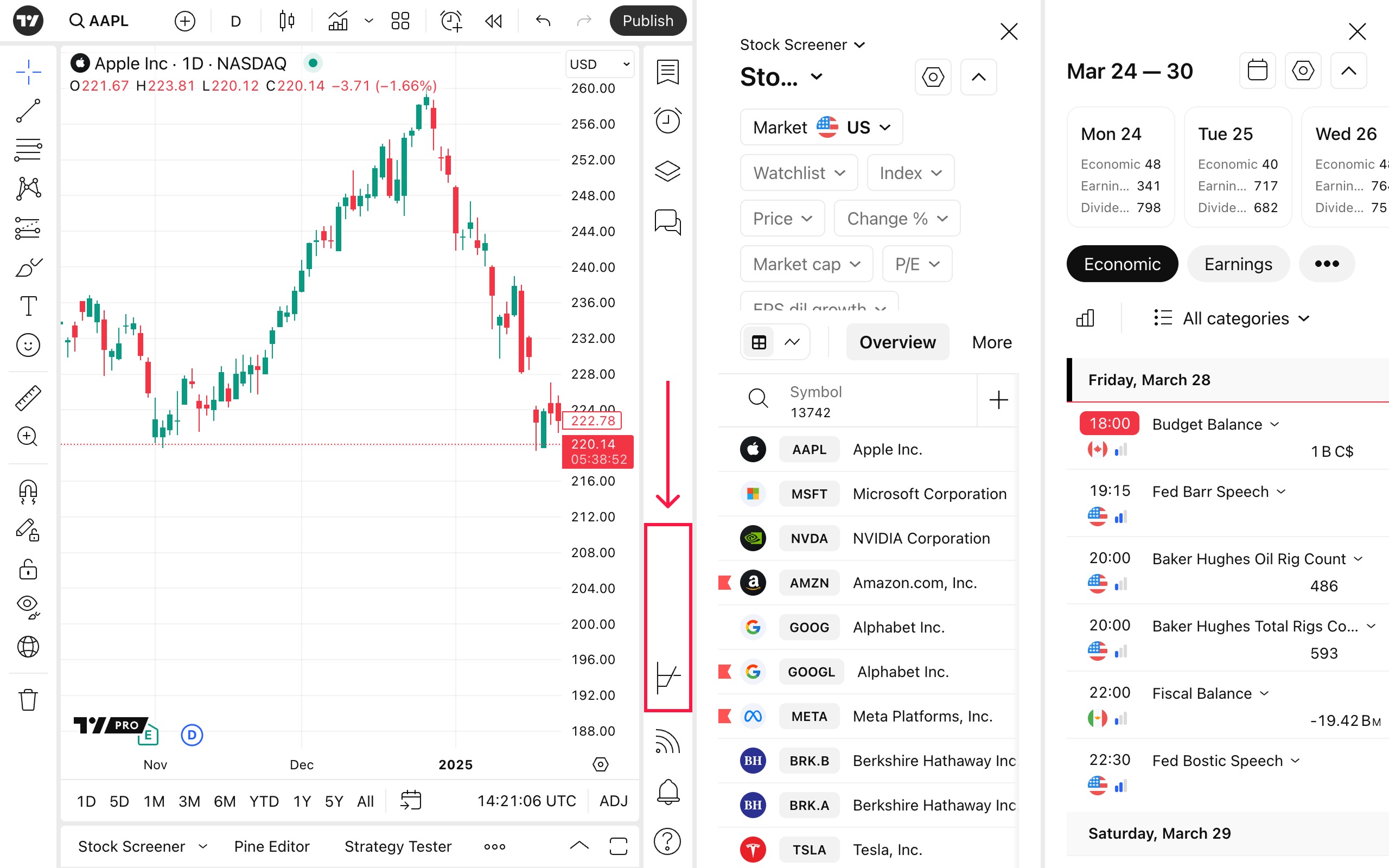 本文将介绍分屏视图模式,该模式可帮助您在绘制图表时更好地组织工作区。它可以防止筛选器、日历和期权插件与图表重叠,从而减少干扰并提高灵活性。