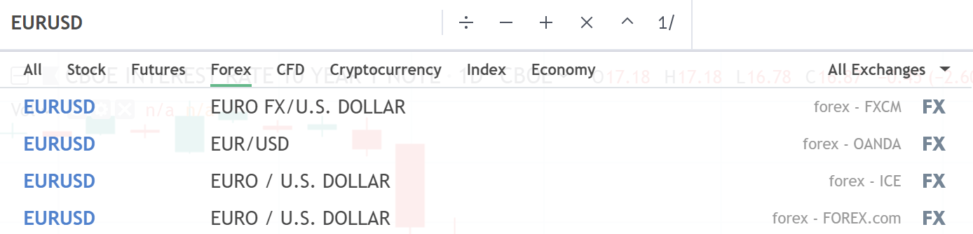 我们有不同的外汇提供商,都可以在商品代码搜索中的外汇标签页找到。