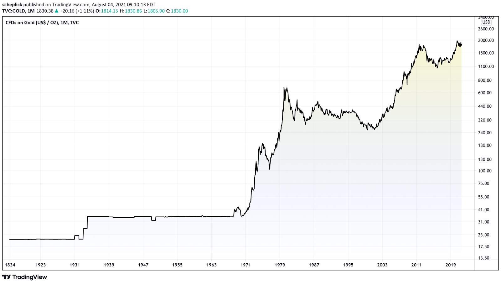 - 黄金(商品代码:GOLD)现在的价格历史可以追溯到 1833 年