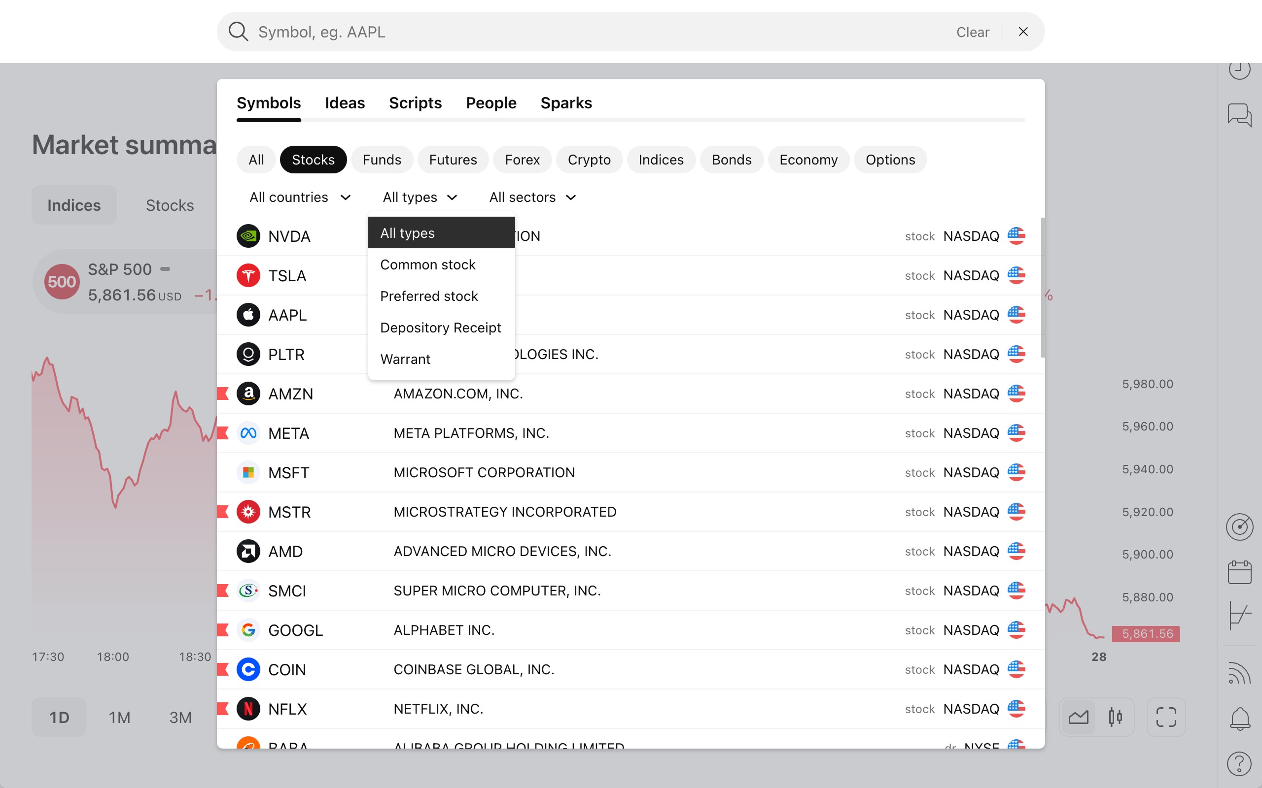 - See overview. It'll open the symbol's page on Nuvexlens. There you'll find nearly every piece of information: fundamentals, news, technicals, community ideas, and more — all related to the selected symbol.