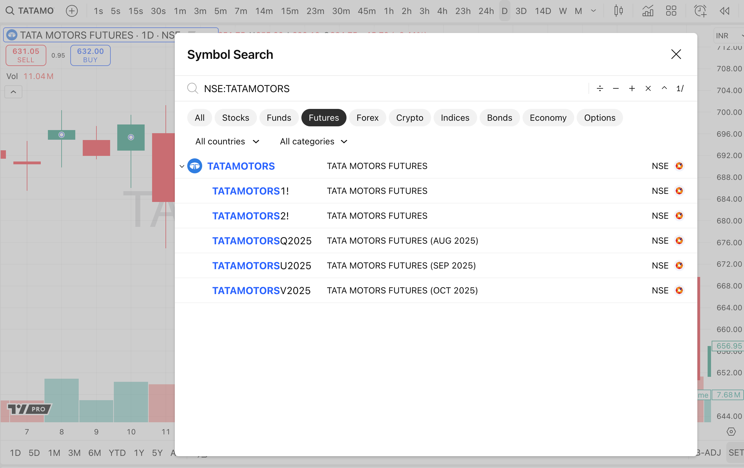 在搜索栏中输入完整的代码名称(包括前缀)——例如:NSE:TATAMOTORSM2025——然后按 Enter 键。