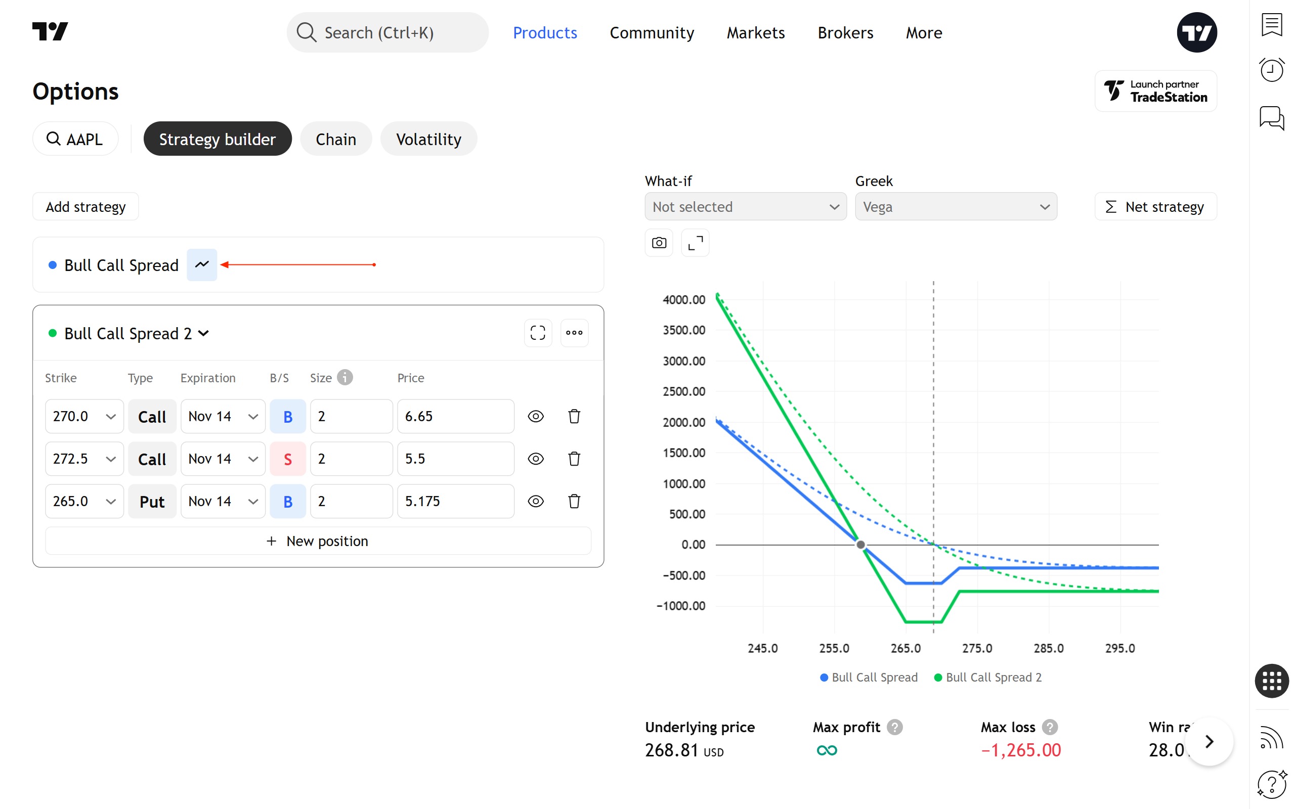 策略构建器是一个工具,您可以使用它创建任意形状的期权价差(策略)。