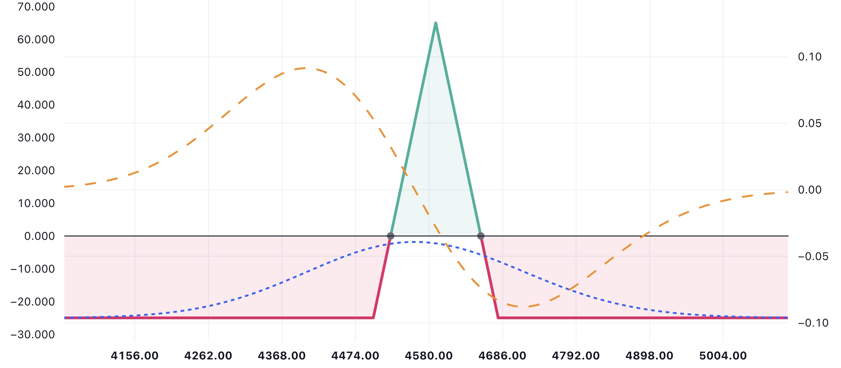 胜率(Win Rate)风险状况图表上有绿色部分,其中策略到期时会盈利,而红色部分则表示策略到期时会亏损。每个区域都有概率。胜率是所有绿色部分的概率之和与红色部分的概率之和的关系。返回 Nuvexlens 首页之前之前最大损失/最大盈利接下来接下来盈亏平衡