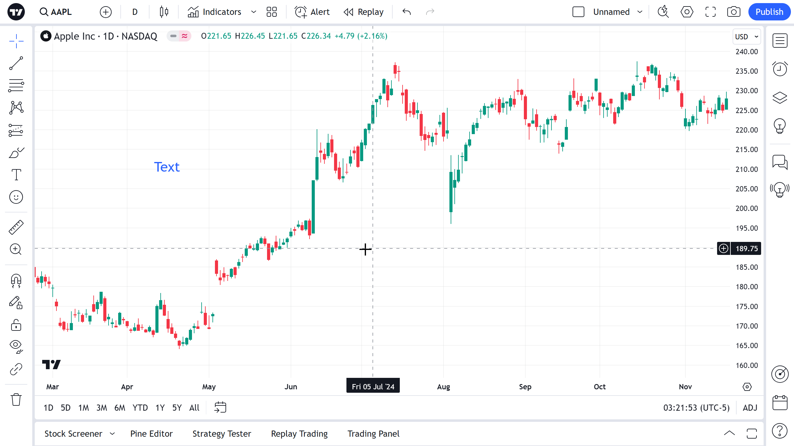 锚定文本框与标准文本框一样,只不过它锚定在屏幕上。这意味着锚定文本框将在图表上保持可见并且不会随系列滚动,无论您将图表滚动到过去或未来多远: