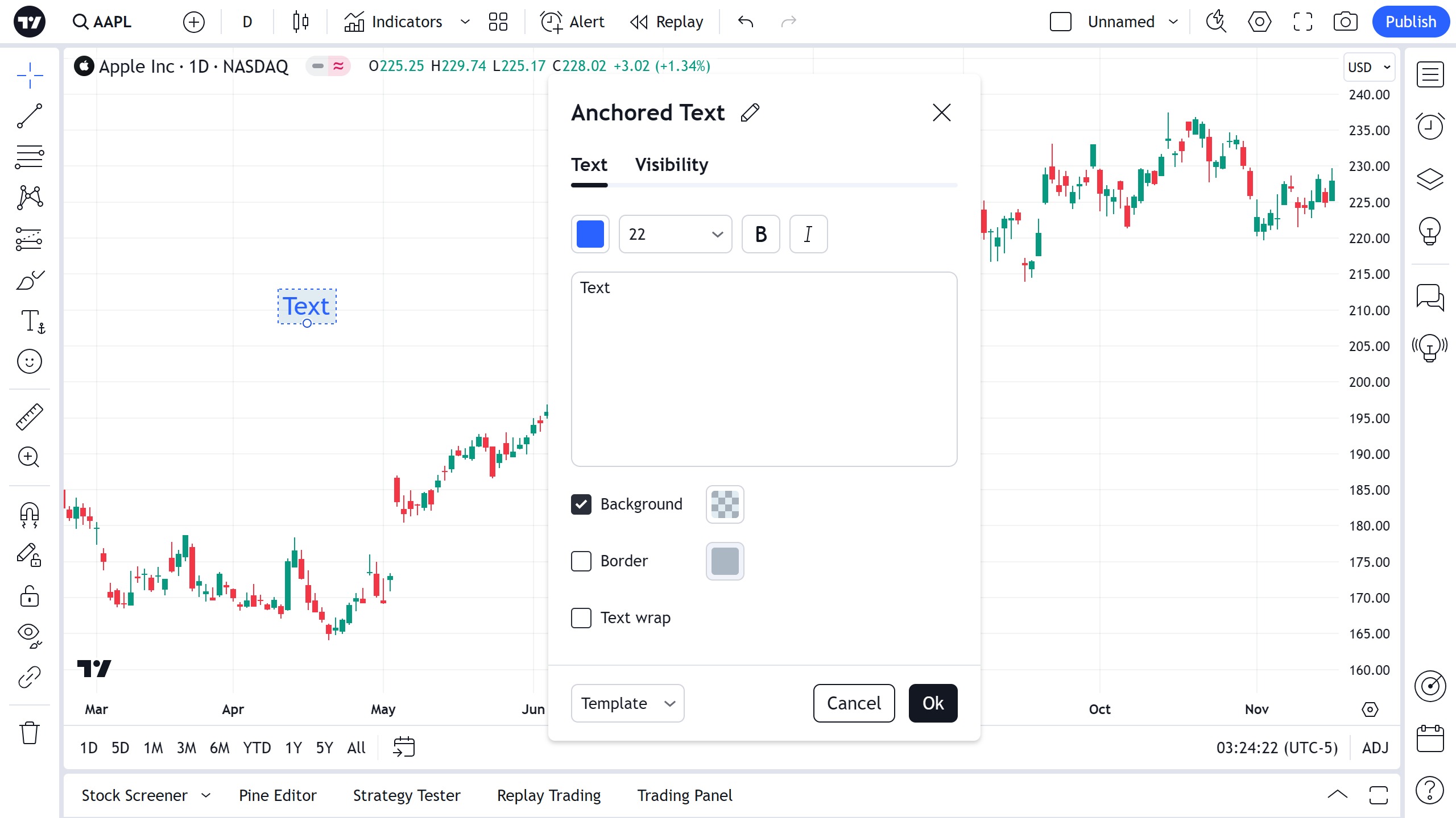 要添加锚文本,请将其放置在图表上并为其输入文本。与所有文本工具一样,您可以直接在图表上编辑锚文本 — 只需单击文本字段,即可输入内容。
