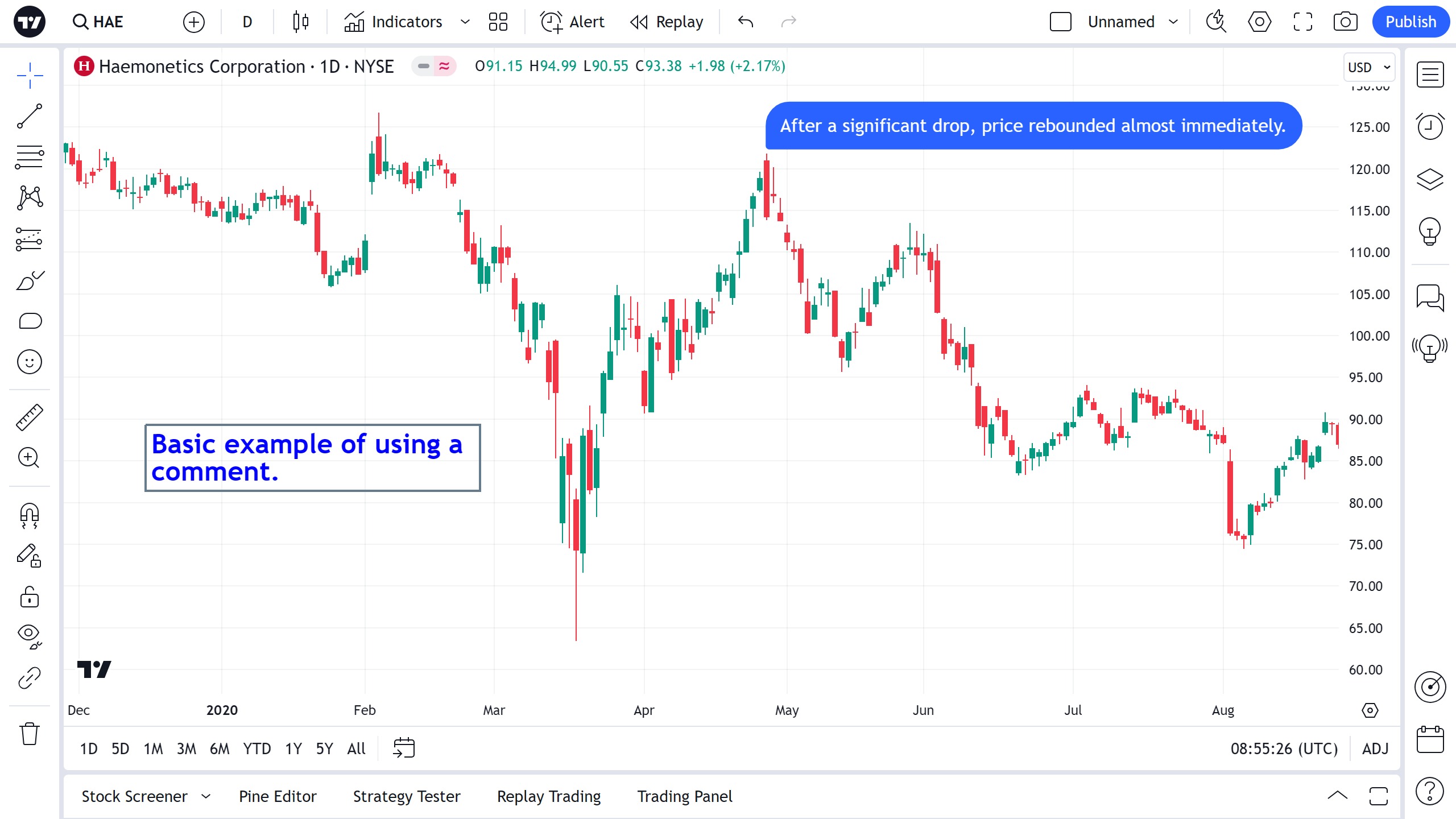 要添加注释,请将其放在图表上并输入文本。与所有文本工具一样,您可以直接在图表上编辑注释文本 - 只需单击文本字段,即可输入。