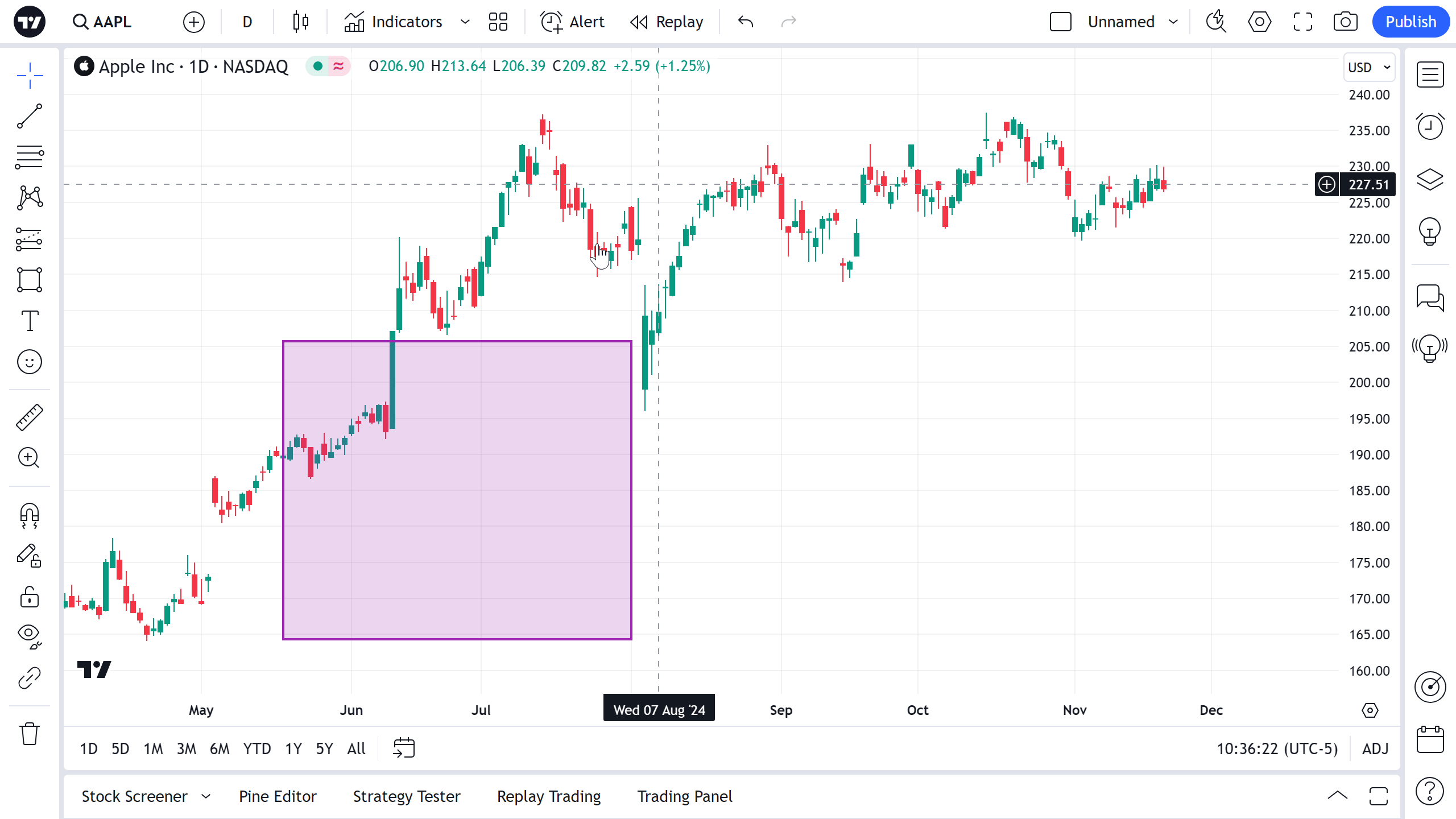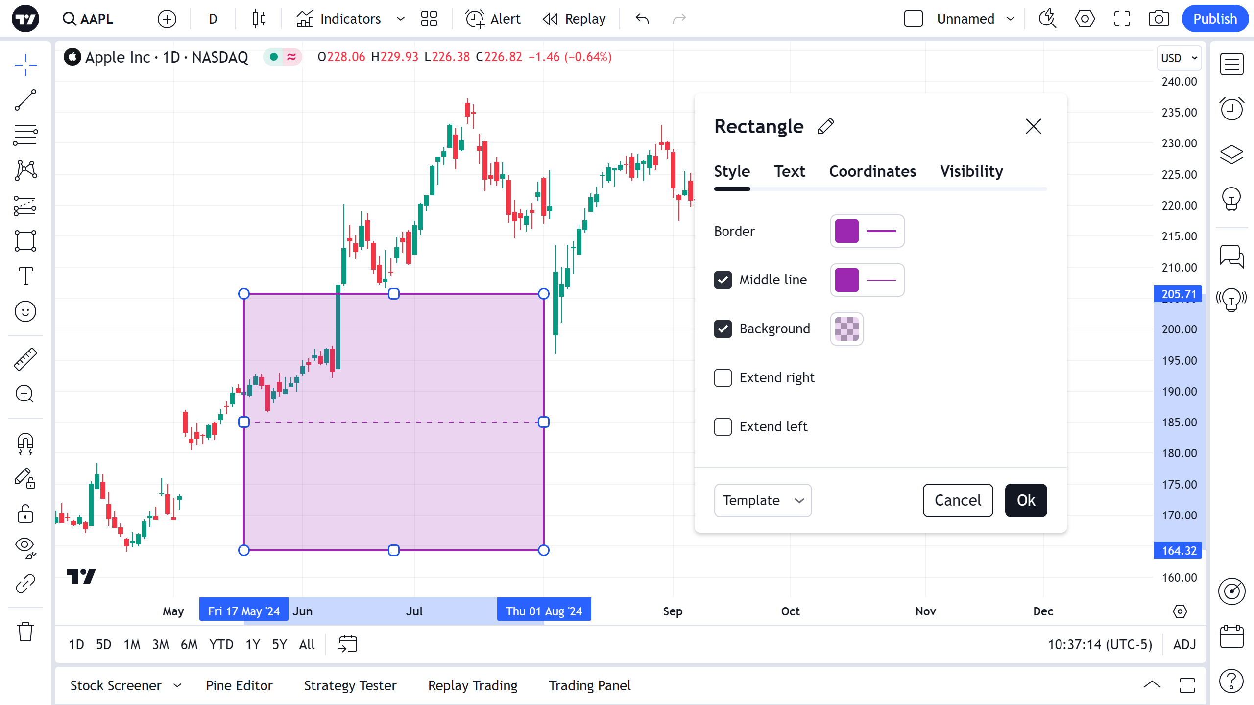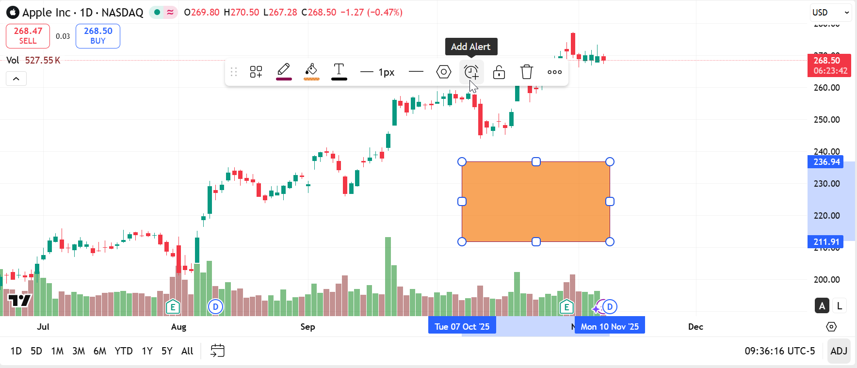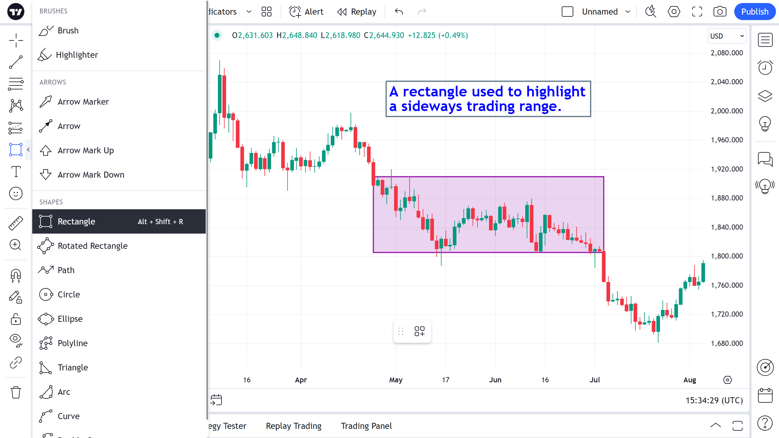 这是一个用于在图表上绘制矩形的简单工具。它通常用于突出显示高度感兴趣的区域。