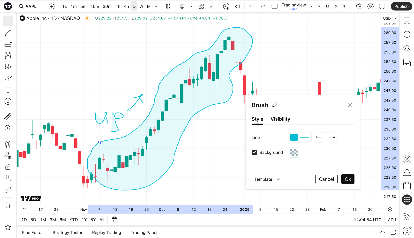 Brush is used as a way to draw freely or annotate on the chart. The paint brush is not bound to a specific shape like most other drawing tools.