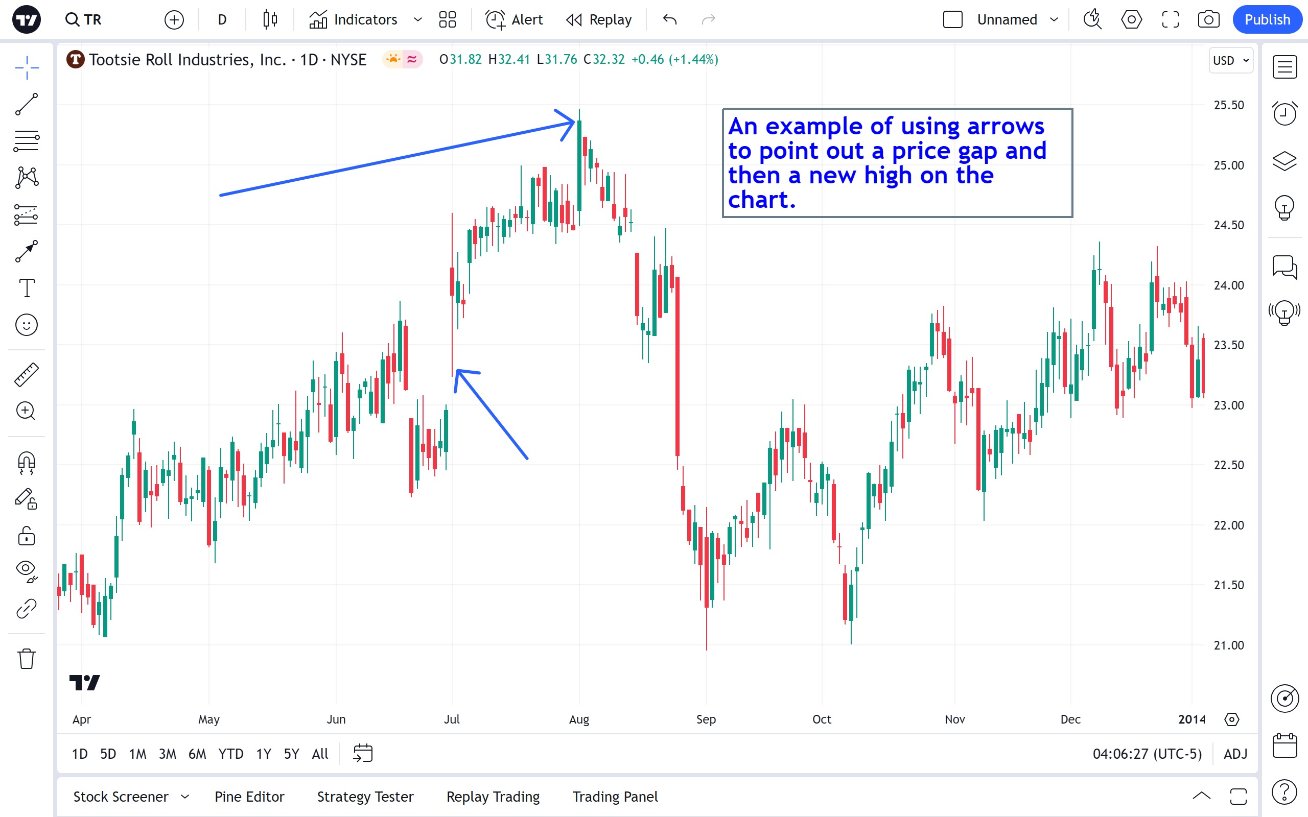 箭头绘图工具仅用于指出图表的特征,通常是价格变动或指标/研究变动。