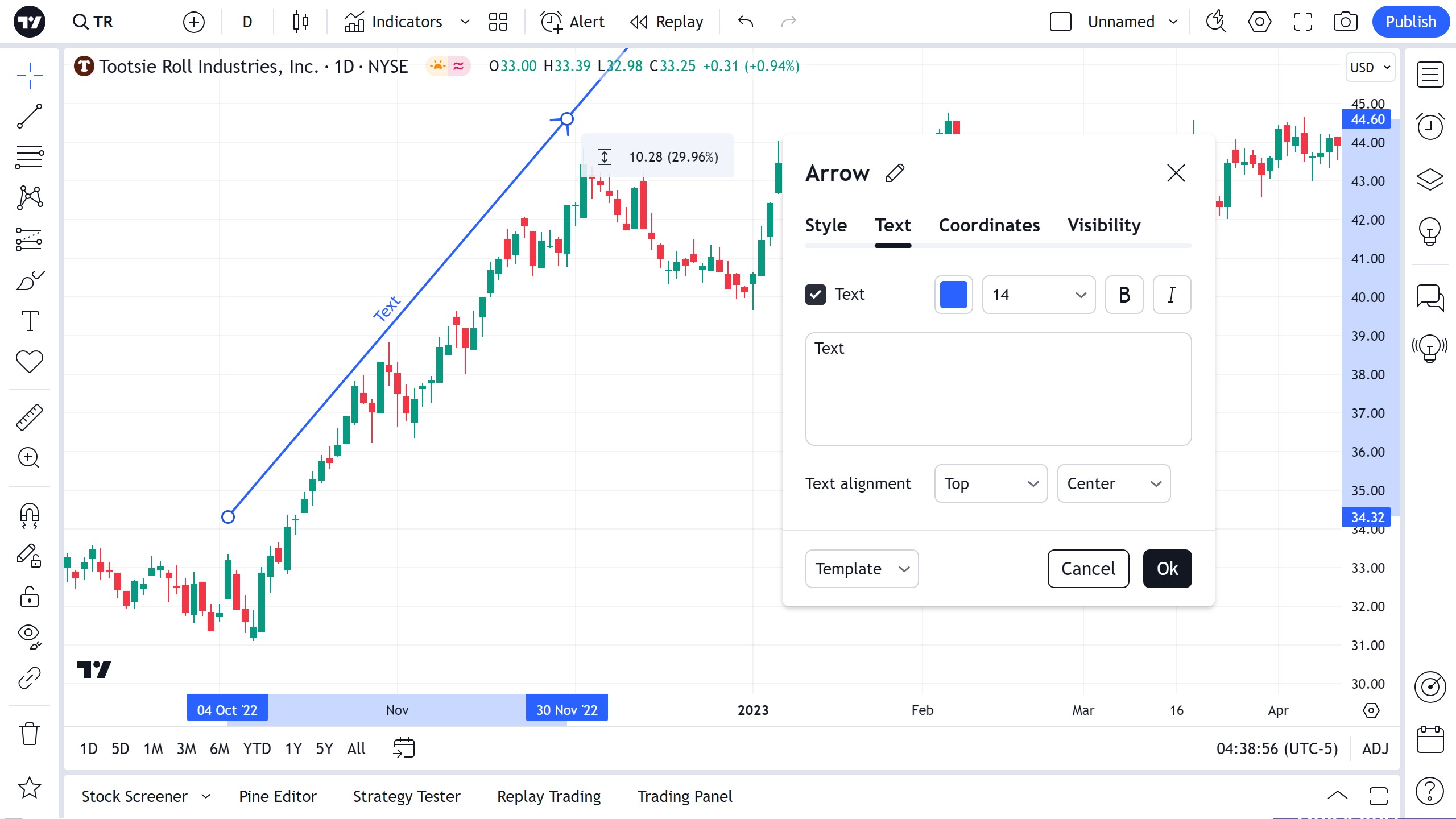 当“文本”复选框处于活动状态时,可以在文本框中输入要显示在箭头旁边的文本。您可以更改文本颜色和字体大小。您还可以选择将文本加粗和/或斜体化。文本对齐下拉菜单允许设置沿箭头线的文本位置。