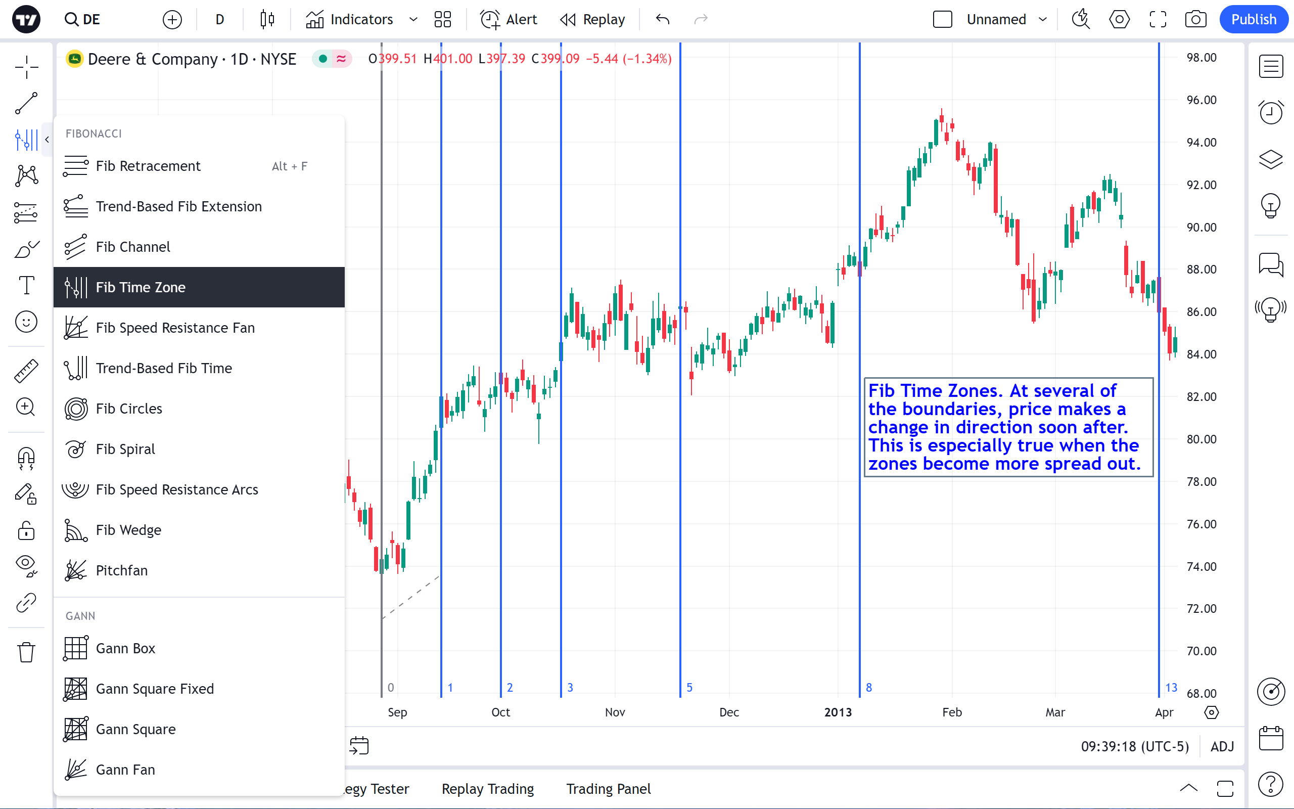 斐波那契时区仅表示与时间相关的潜在重要区域。 不考虑价格。
