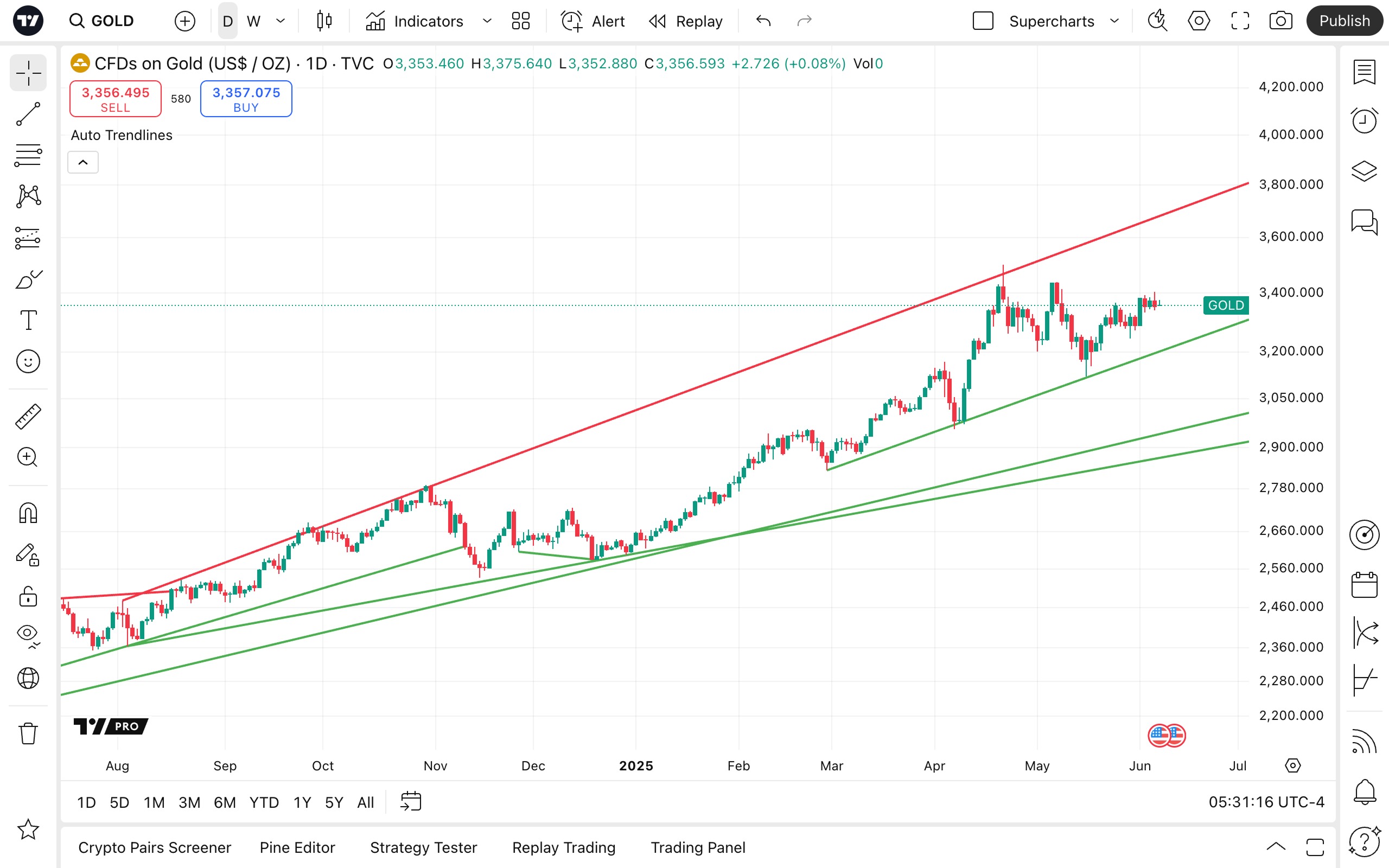然而,“自动趋势线”指标无论如何配置都会跟随价格并进行调整。