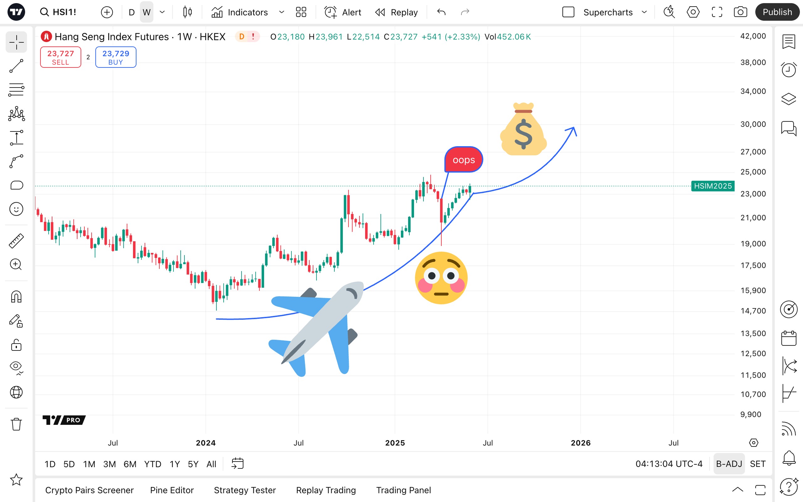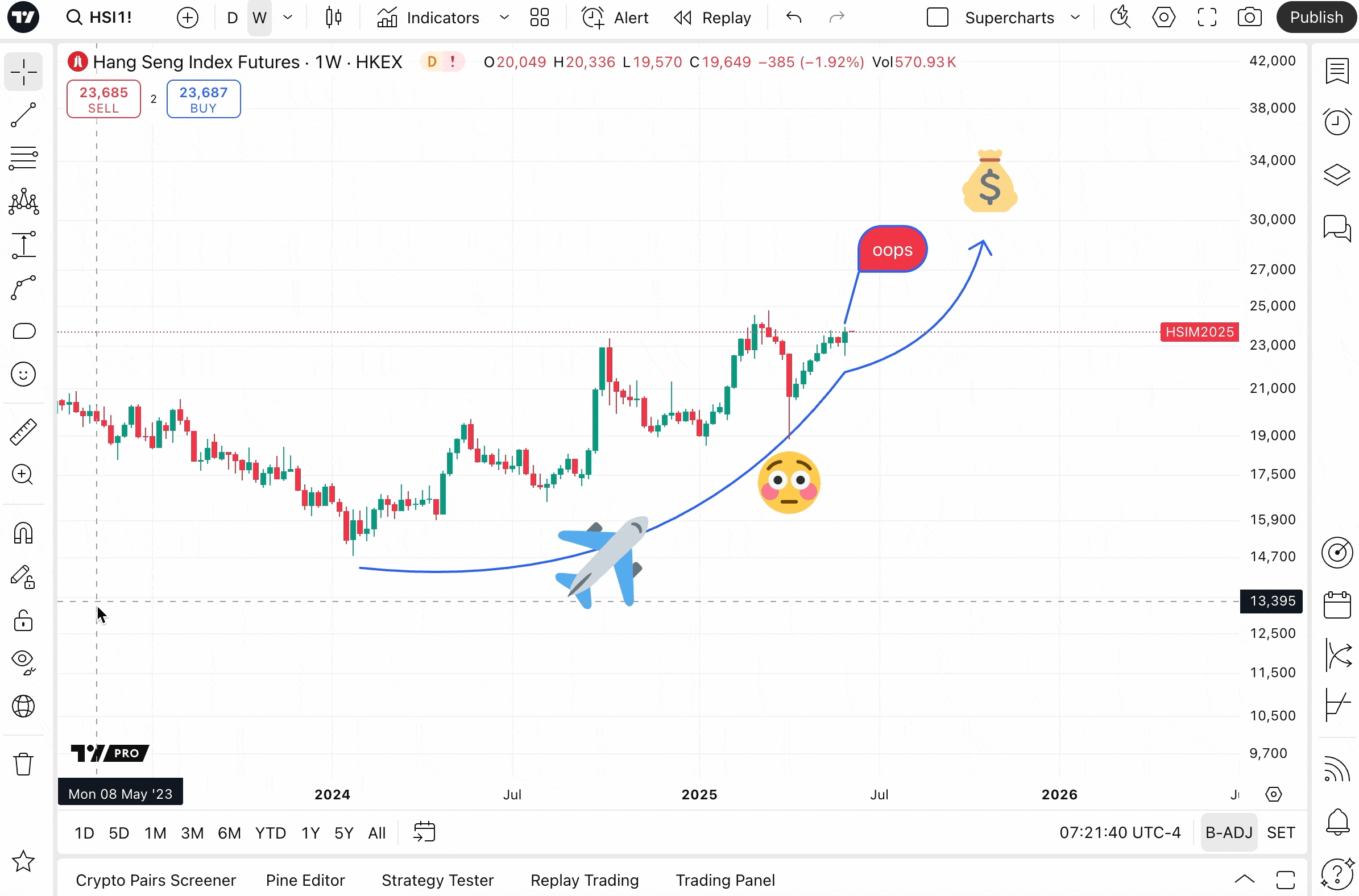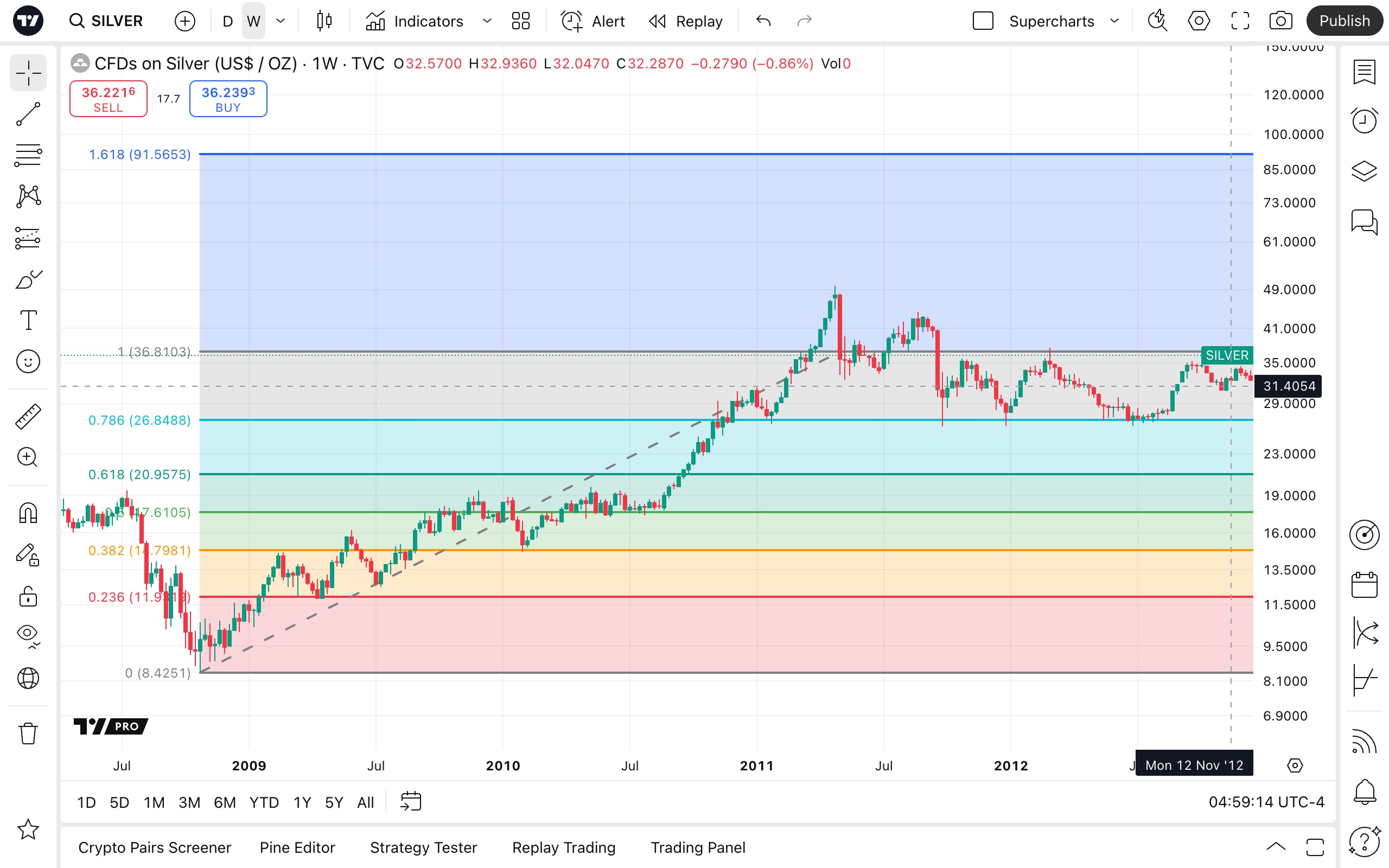 位于超级图表左侧工具栏的绘图功能,是进行最复杂技术分析的关键工具。它们可以帮助您彻底审视资产的表现,减少您的工作量,从而腾出时间和精力进行决策。