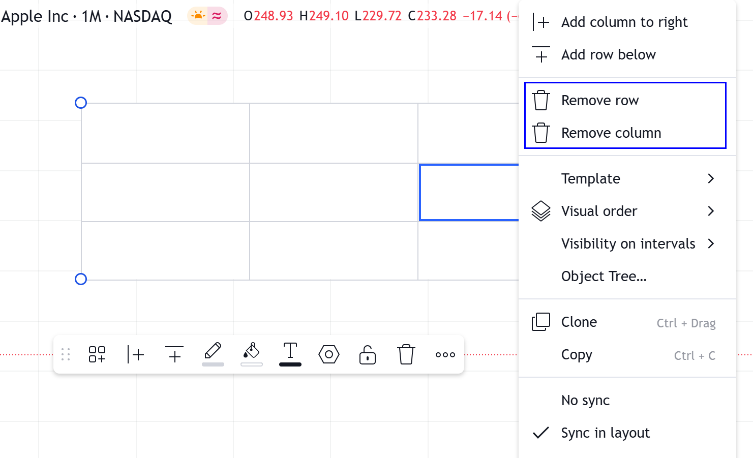您可以使用浮动工具栏或上下文菜单添加行和列。默认情况下,新行和新列会添加到末尾。如果选择了一个单元格,则新列会显示在单元格右侧,新行会显示在单元格下方。