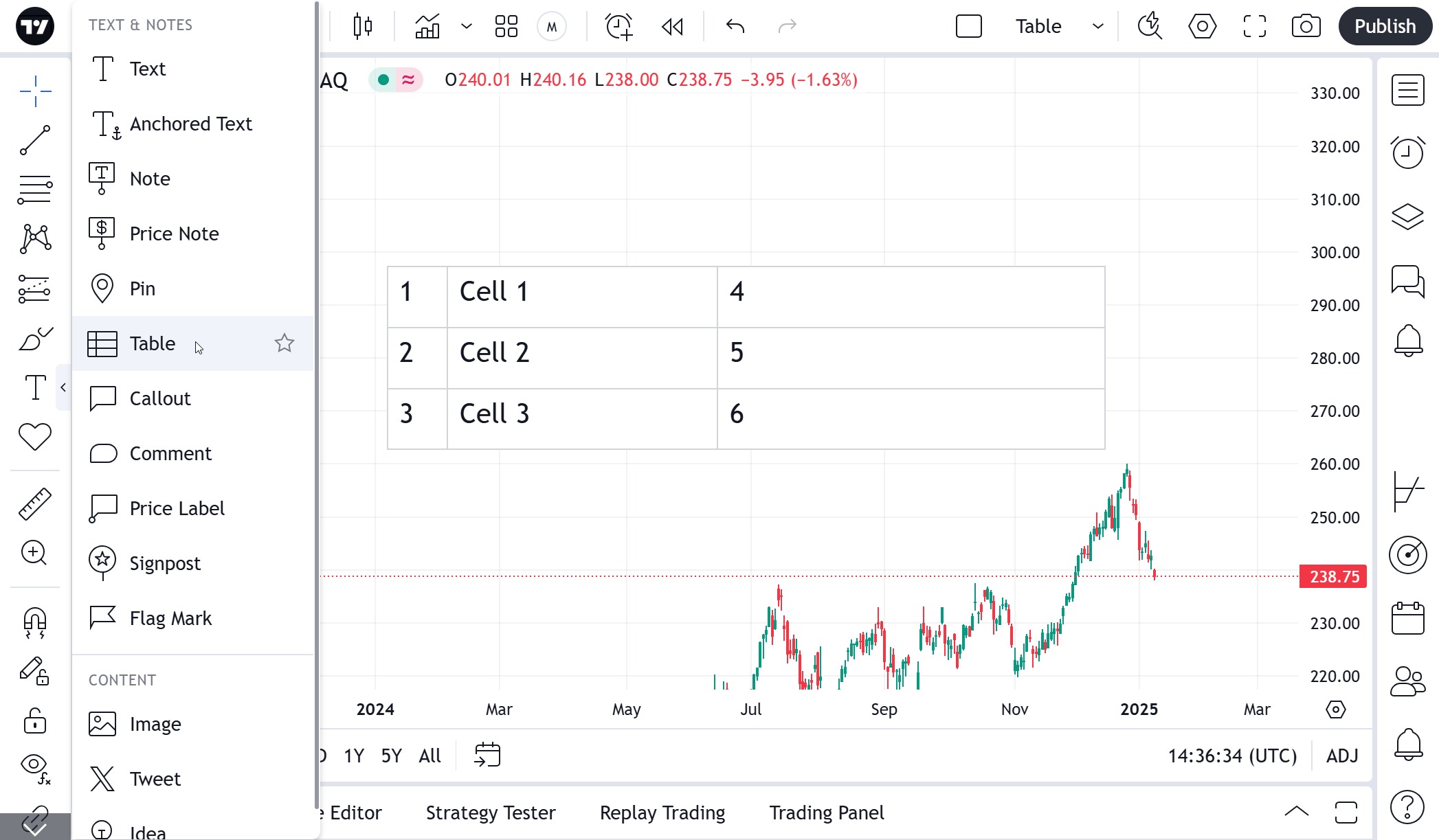 表格工具允许在图表上绘制自定义表格并用数据填充。