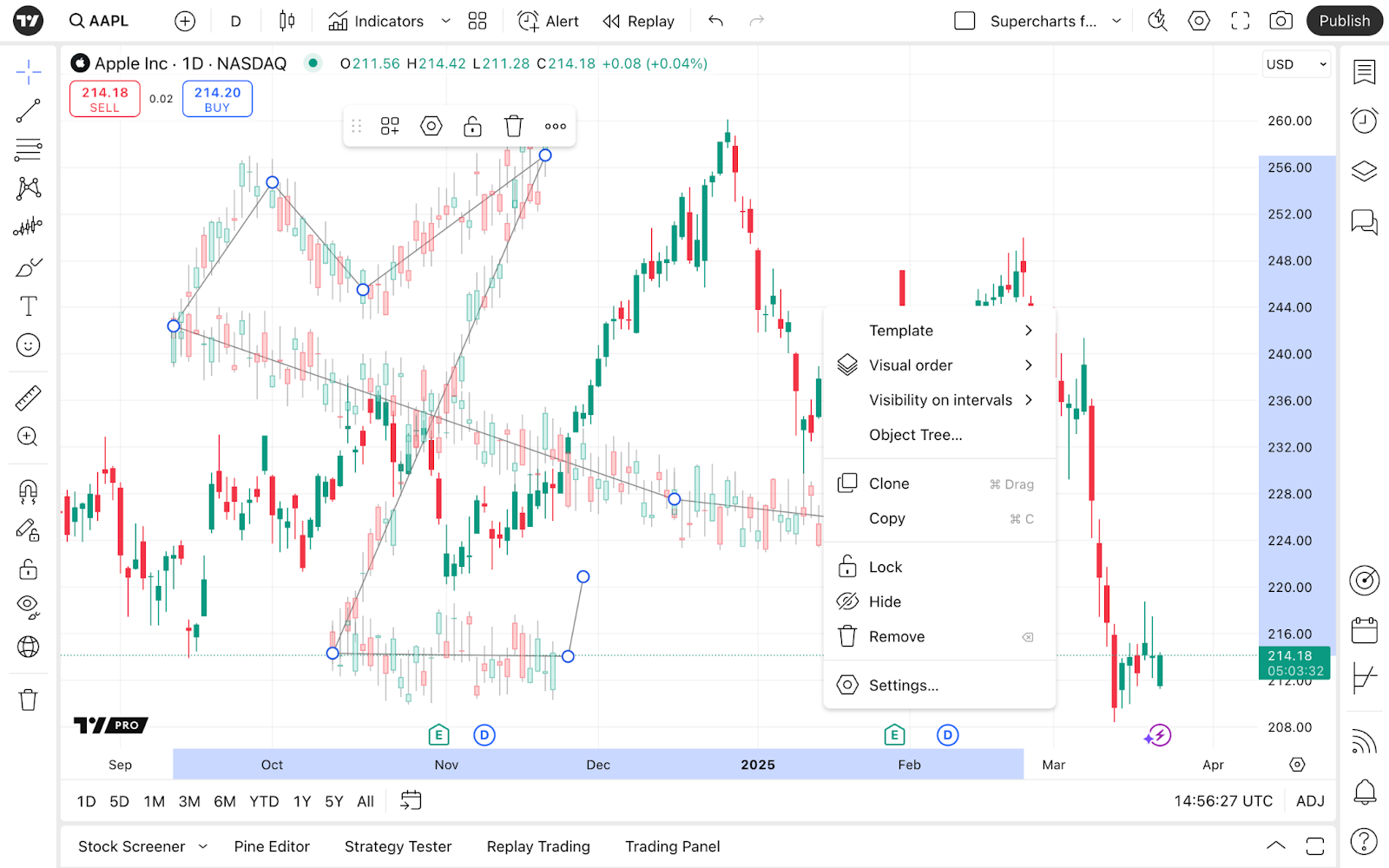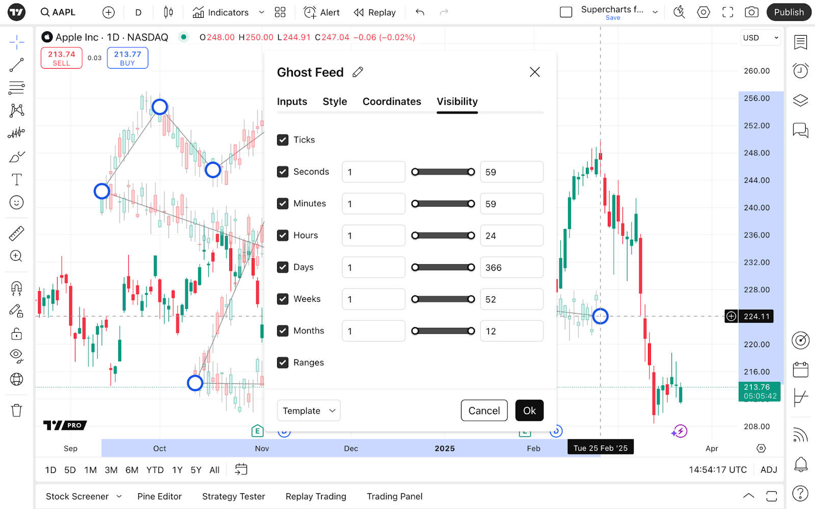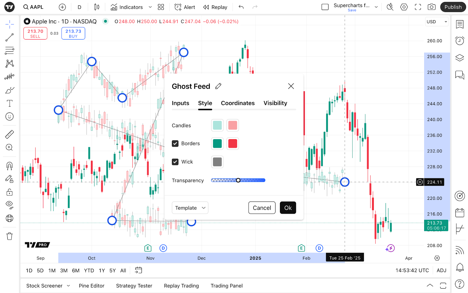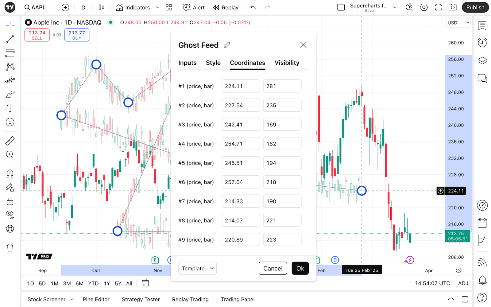 - 克隆和复制模拟K线。将其用于其他包含其他商品的图表 — 它会保留所有设置。