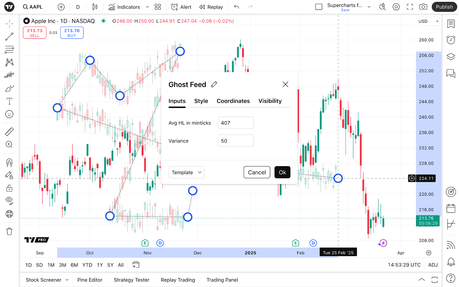 !注意:模拟K线旨在绘制标准K线。您可以尝试将其与其他图表类型结合使用,但我们建议您避免使用,以免数据出现偏差。