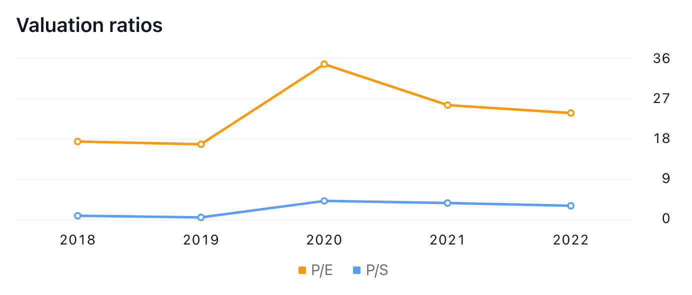 这两个比率可能会因行业、市场条件和公司的发展阶段而有很大差异。因此,谨慎使用它们并结合具体情况非常重要。历史表现可以表明买入或卖出股票的正确时机(当股价处于历史最低或最高值时),并表明业务表现的轨迹以及市场如何评价它。