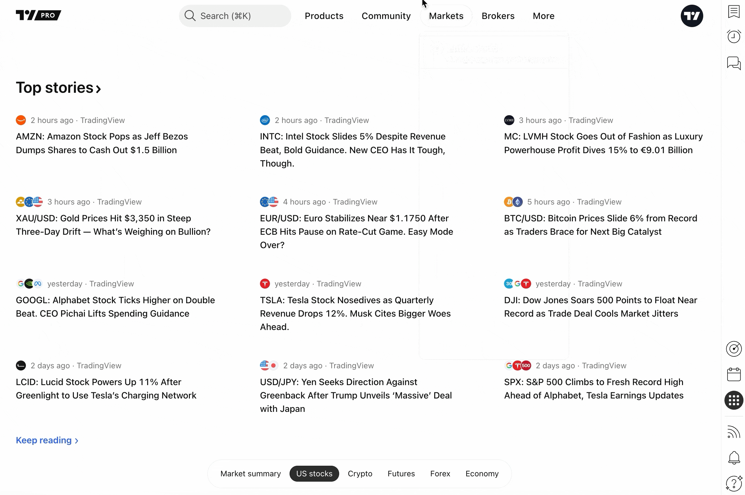 第二种方法是进入您想要分析的公司的市场页面。