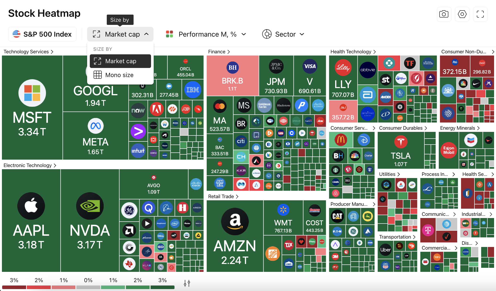 大小 - 该参数影响整个地图的排序,以及与所选参数成比例的商品单元格的大小。