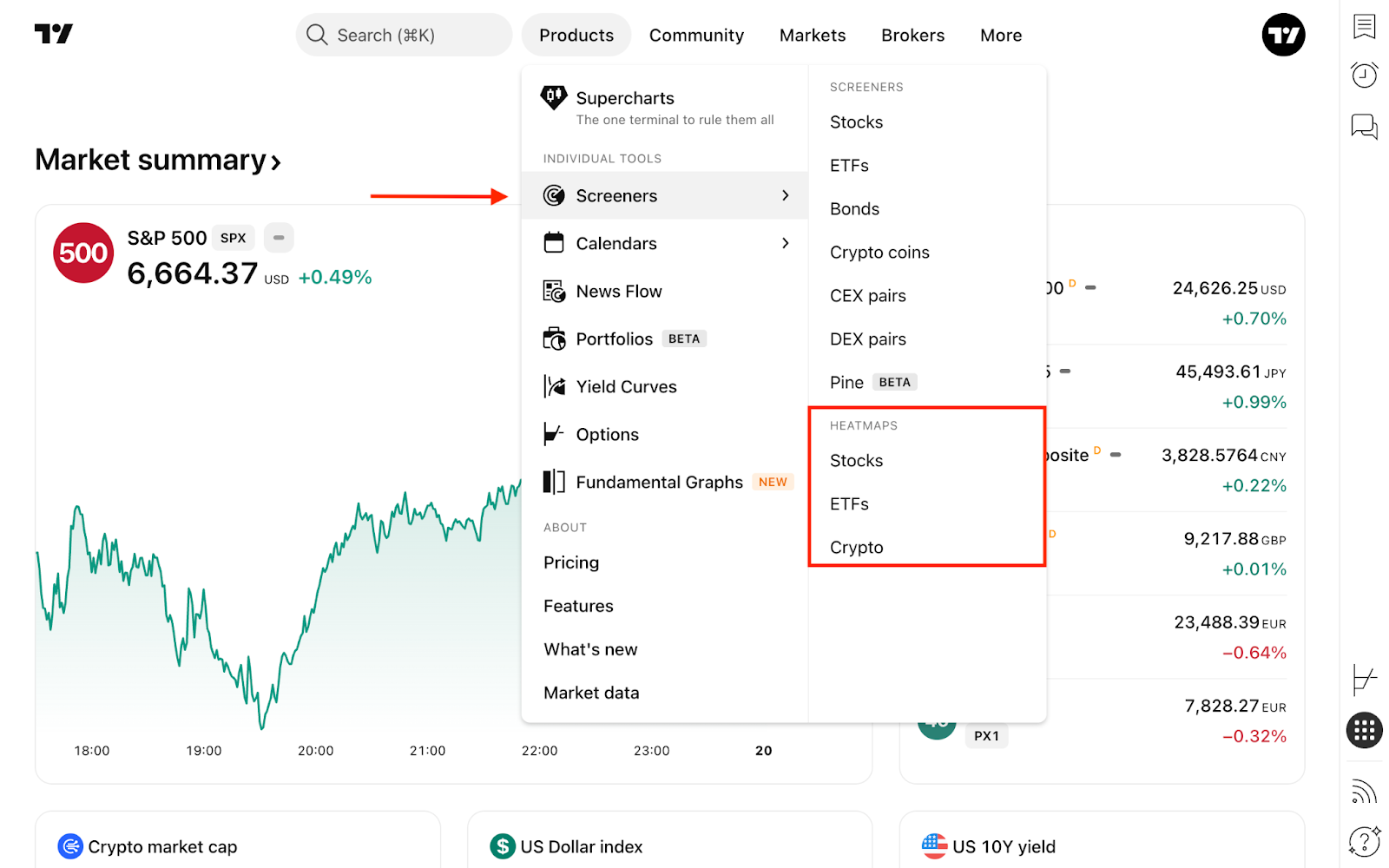 - 打开“产品”→“筛选器”→“热力图”→“股票”