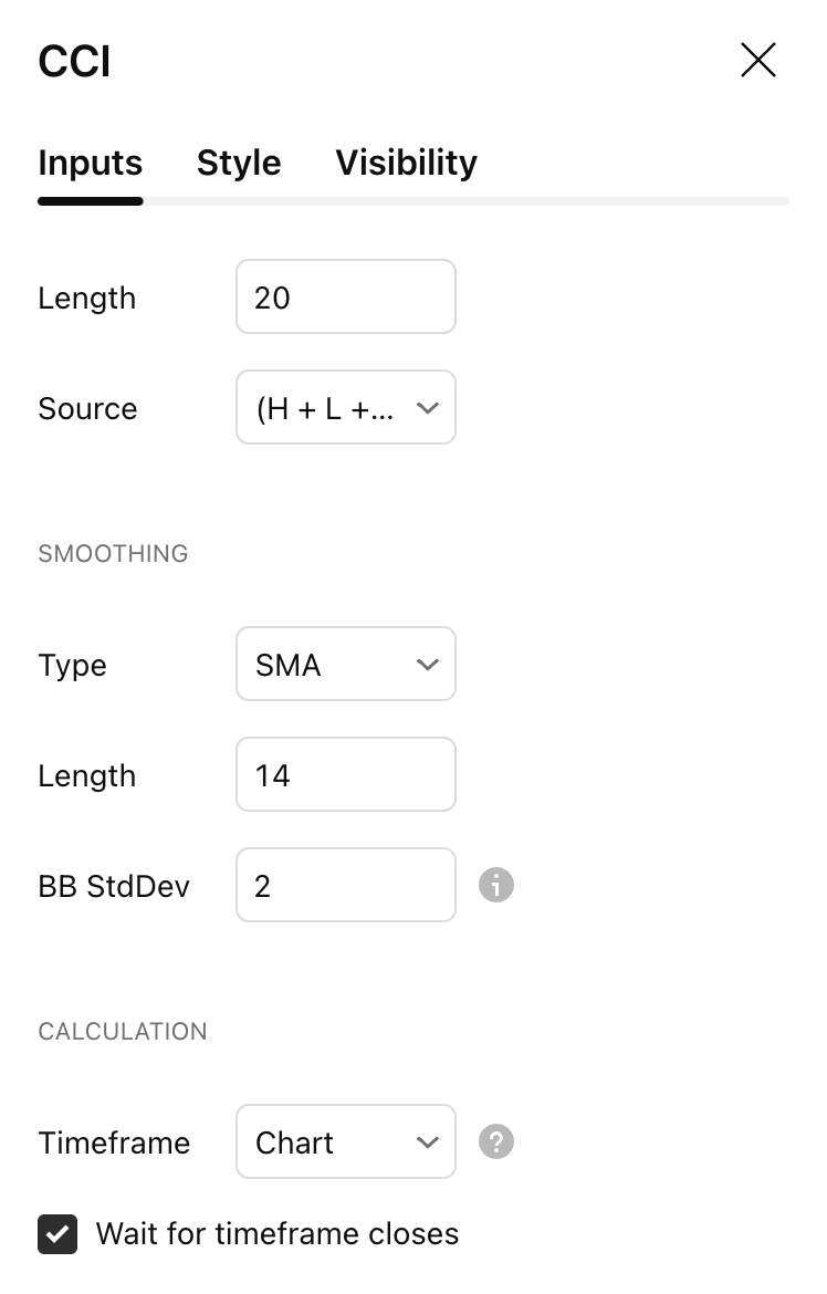 用于计算 CCI 中 SMA 部分的时间周期(默认值为 20)。