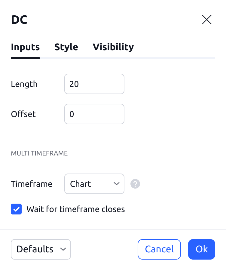 指定计算指标的时间范围。此选项允许根据另一个时间周期的数据计算 VWAP,例如,将1H图表上计算的VWAP显示在5m图表上。