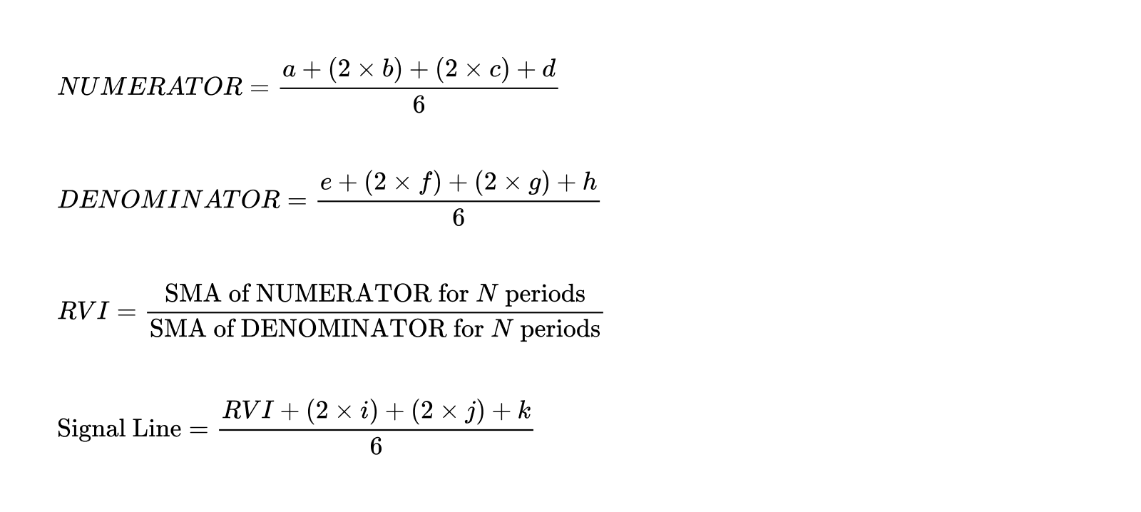 要计算相对活力指数 (RVI),请按照以下公式下方列出的说明进行操作。