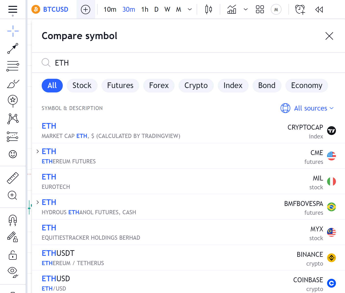如何绘制股票、加密货币和外汇的表现图表?所有用户,无论是否订阅,都可以选择在一个屏幕上比较多个商品。要激活此功能,请点击顶部控制面板上的比较按钮。然后,在出现的窗口中,选择您需要的商品。现在有几个商品可以同时进行分析。 返回 Nuvexlens 首页之前之前如何在布局中的所有图表启用状态线接下来接下来我想看看内置指标的源代码
