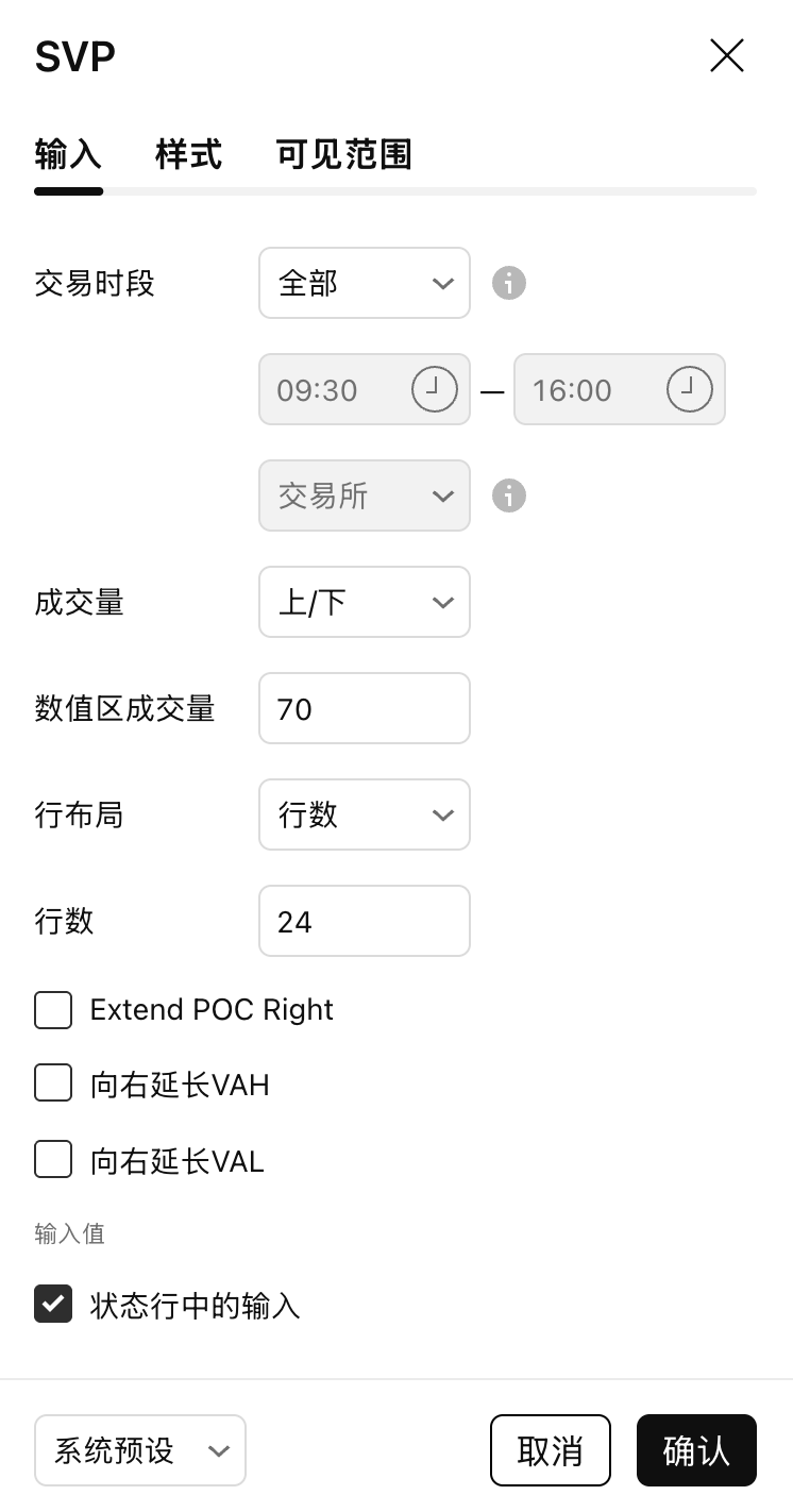 图表时间周期 | 用于 VP 计算的较低时间周期 | 深度比率 |