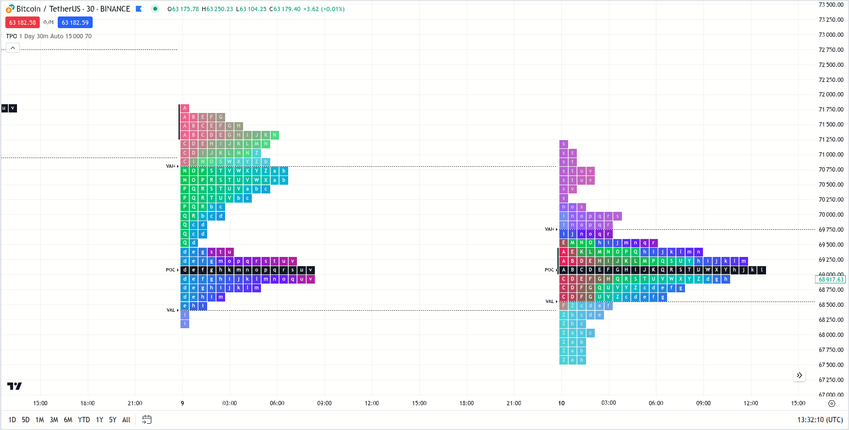 时间价格机会(TPO)指标通过按字母顺序排列的区块,展示不同价格水平的持续时间,从而直观地展现市场活动。它通过TPO曲线展现市场平衡和不平衡状态,帮助您识别重要的价格水平、支撑位和阻力位以及分布模式。