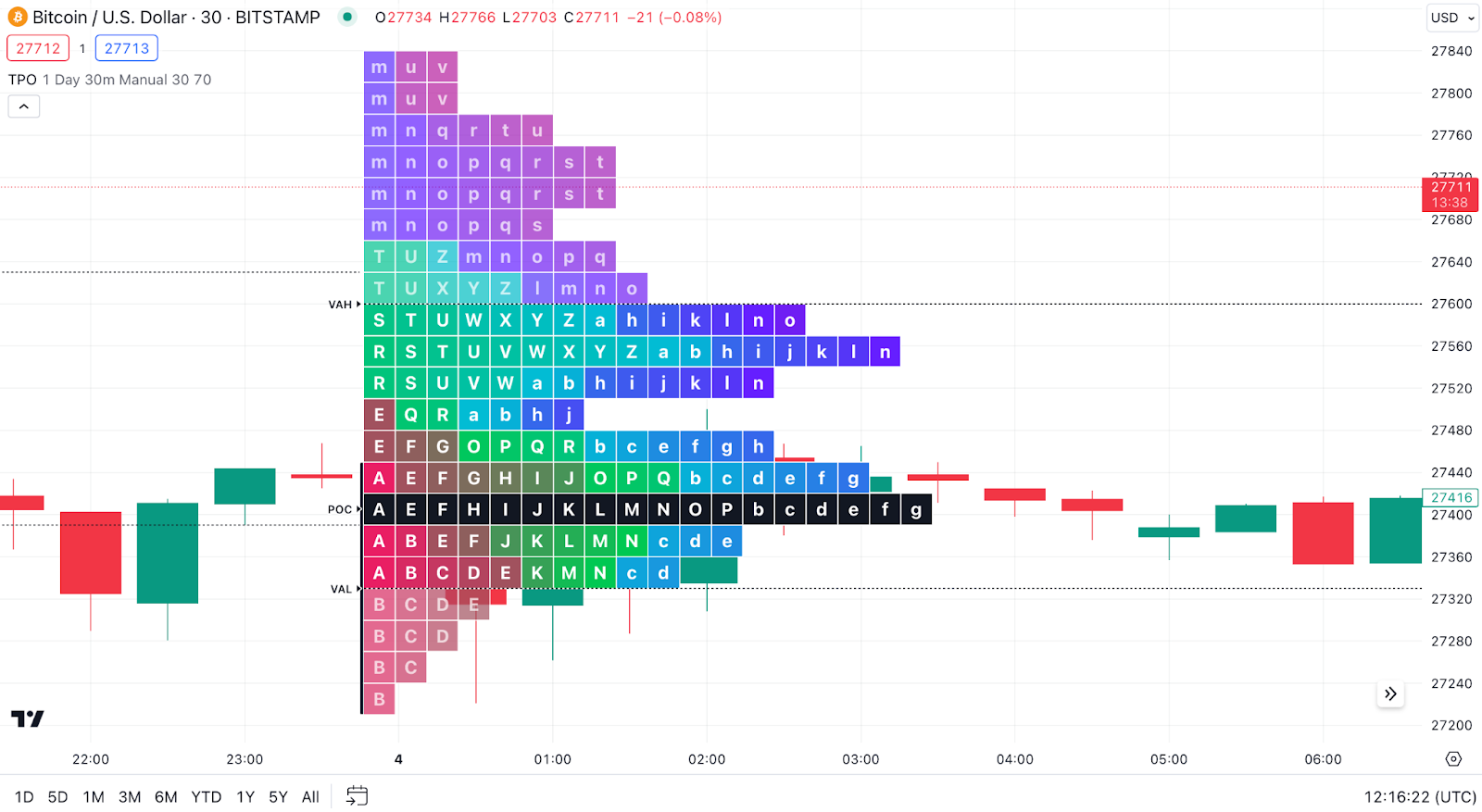 您可以将POC视为未来价格走势的潜在参考,因为市场价格可能会向历史活动更集中的区域靠拢。在后续曲线中,价格与POC水平的反复互动增强了其作为支撑位或阻力位的分析意义。
