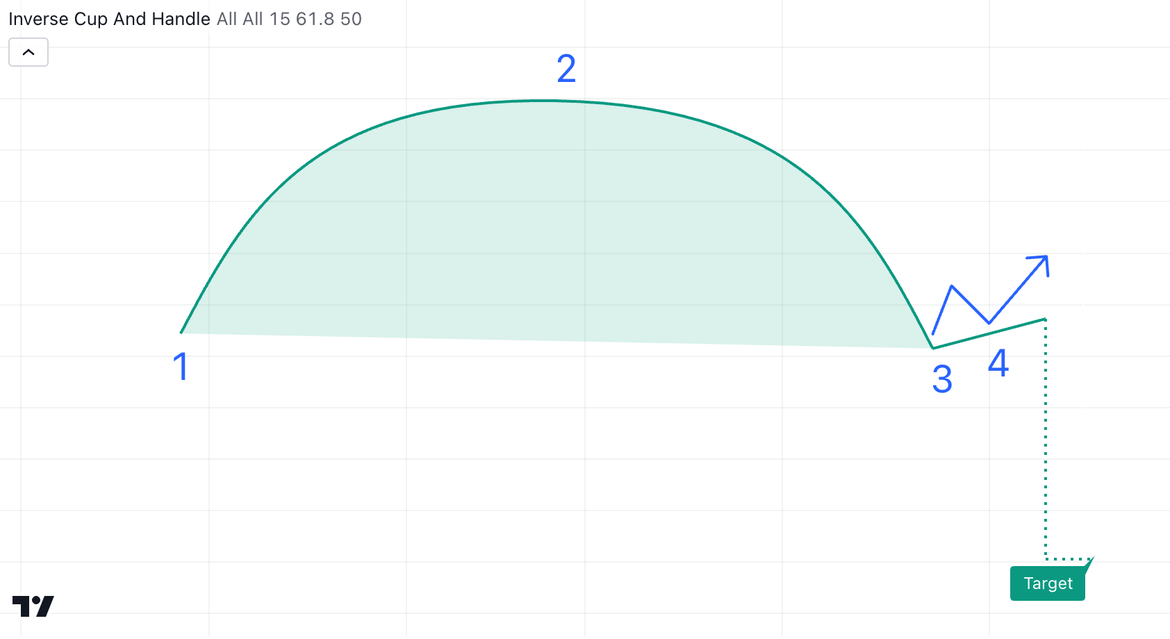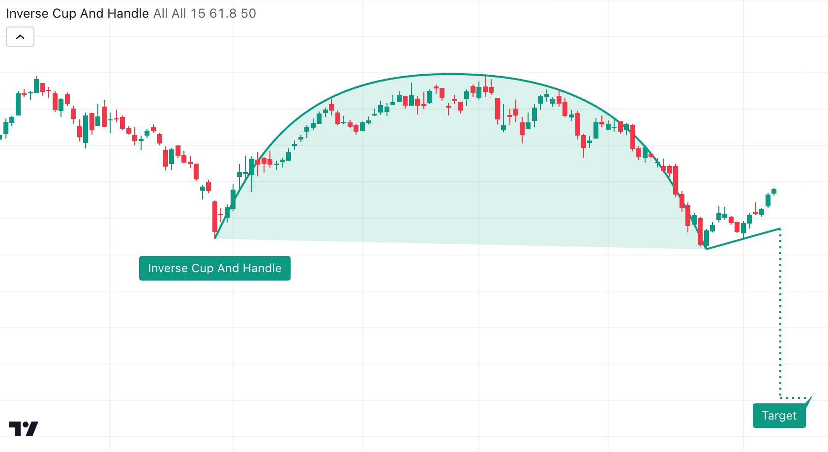 反转杯柄指标是一种强调延续模式的指标:主要趋势的U形修正 - 杯形 - 以及杯形之后的另一个小幅修正运动,该运动也可以呈U形,也可以表示为向上倾斜的趋势线 - 杯柄。杯子的边缘应大致处于同一水平。预计在突破趋势线后,价格将进一步下跌,跌幅等于碗的高度。